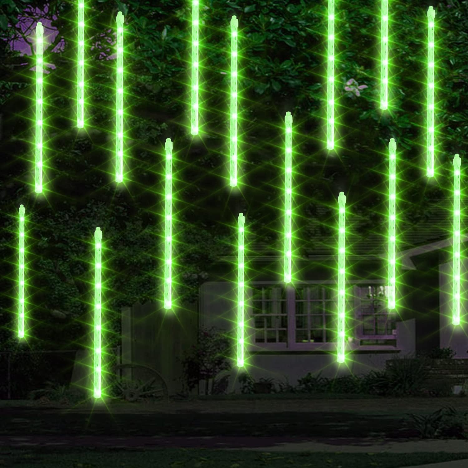 Dazzle Bright 288 LED Christmas Light, 11.8 Inch Meteor Shower Rain Lights with 8 Tubes, Waterproof Plug in Falling Rain Lights Christmas Decorations for Xmas Bushes Tree Yard Party (Green)