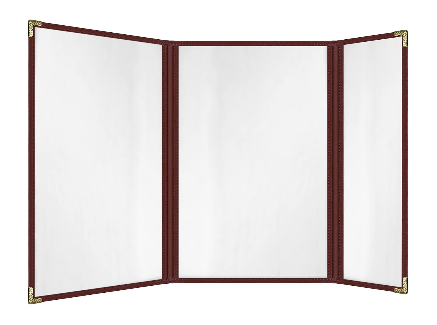Goodsmart Restaurant Menu Covers – 25 Pack Burgundy 6 Views Trifold, Side-Loading Menu Holders, Vinyl & Plastic Menu Covers, Clear Menu Sleeves, 8.5" x 14" & 4.25" x 14", Café Style with Gold Corners