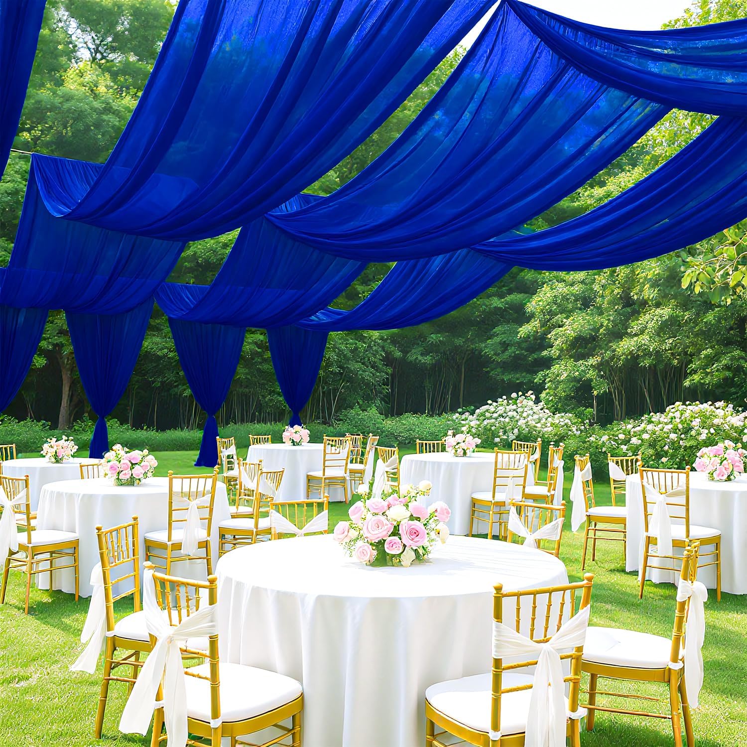 • ✿【Size - Wedding Ceiling Drapes】Package includes 2 panels royal blue chiffon fabric drapery. Size of each panel is 5FT( 60 inches) width by 20FT( 240 inches) length covering a total area of 10ft width x 20FT length. This wedding archway chiffon draping fabric can help your party to create a warm and elegant scenes.