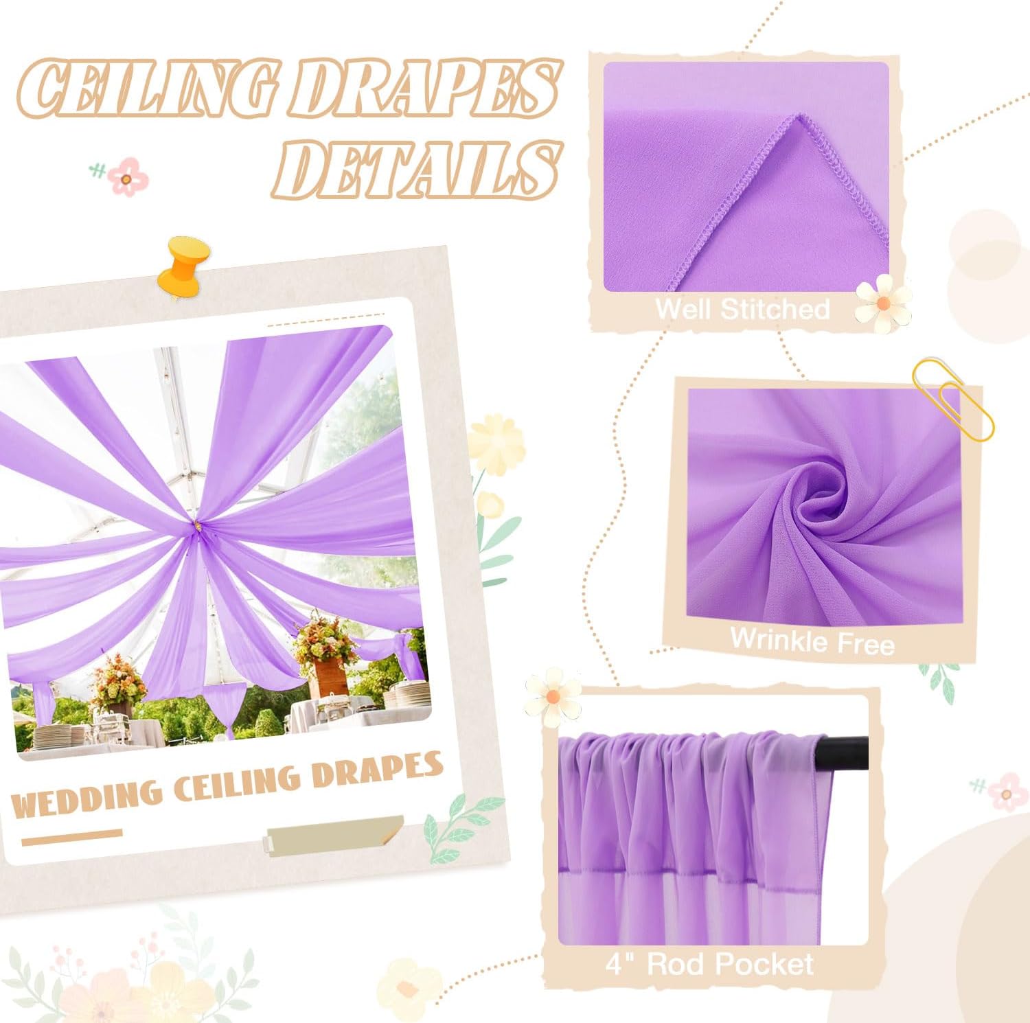• ✿【Multi-Scenes Uses - Tent Ceiling Drapes Outdoor Indoor】Purple sheer ceiling curtains is the best choice for wedding ceremony, weding arch, swag decorations, home decorations, ceiling decorations, tent decorations, engagement, stage, bridal shower, baby shower, anniversary, banquet, prom, birthday, celebration, graduation, party, reception, photography, photo booth, holiday and special events.