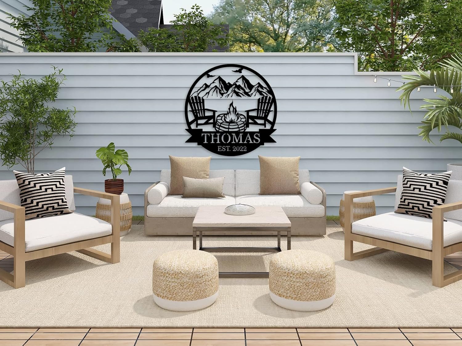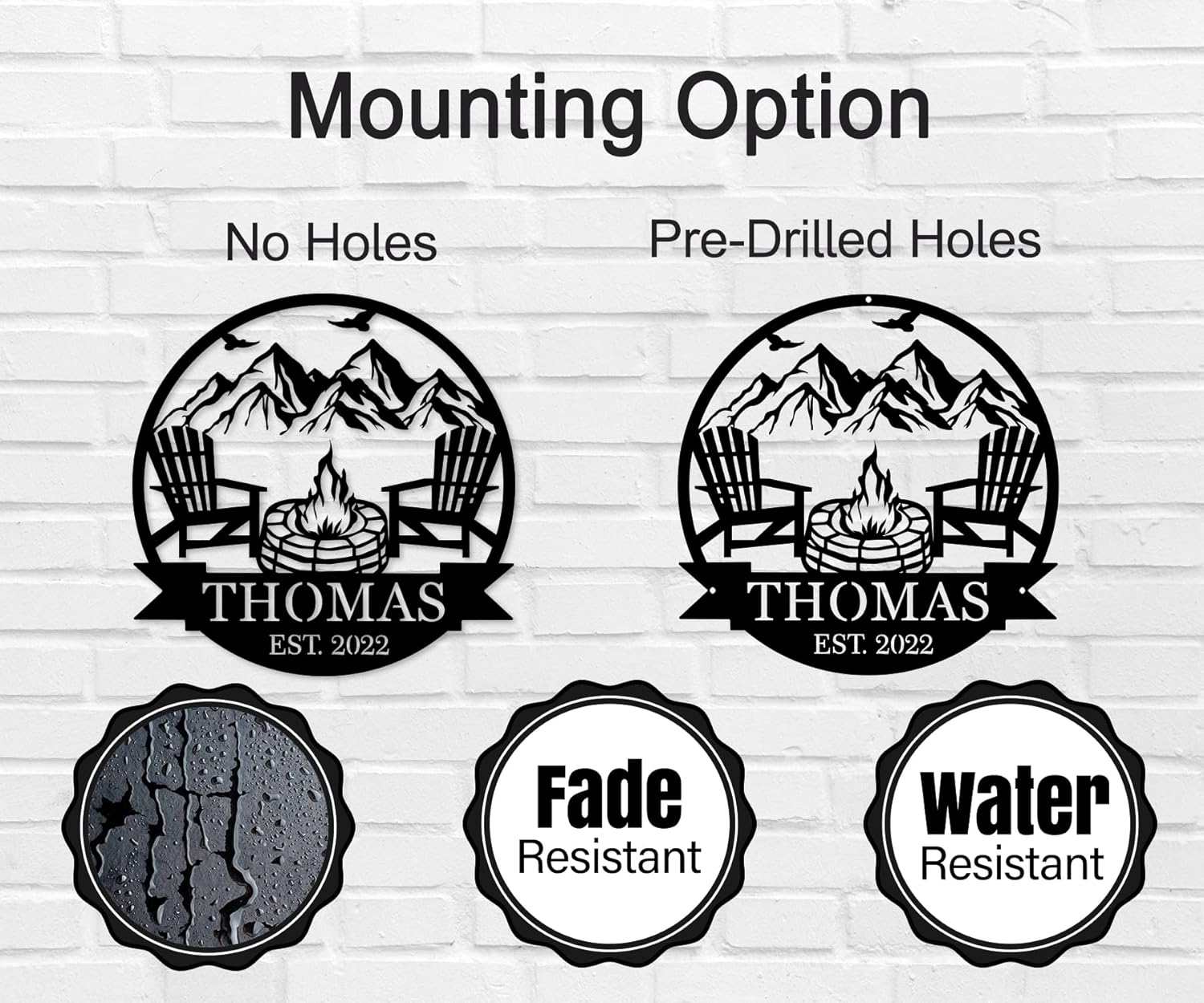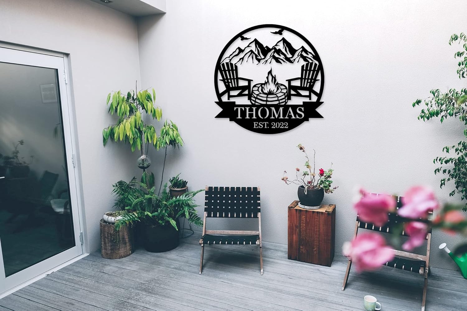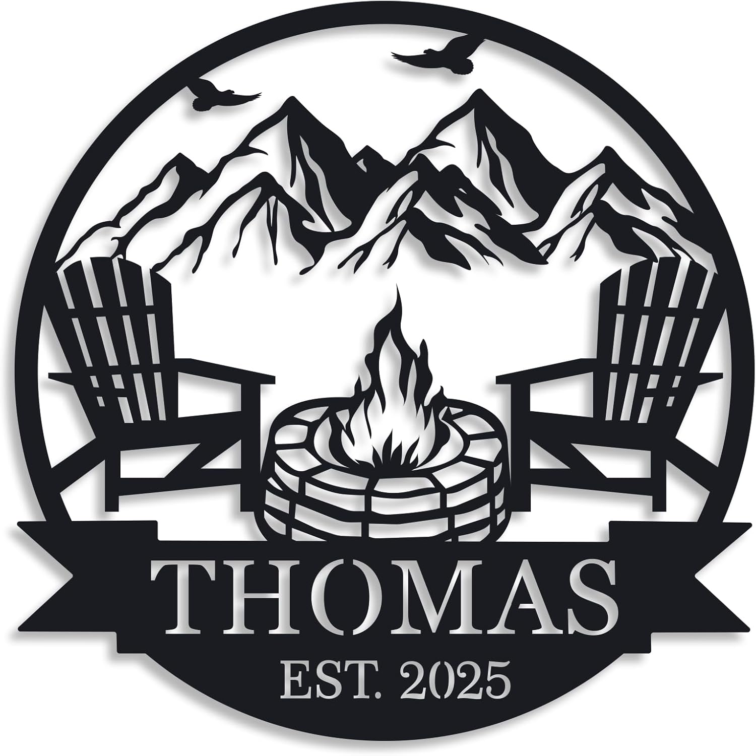 Personalized Campfire Family Name Sign, Monogram Name Camping Sign, Custom Campfire Sign, Campsite Sign, Mountain Campfire Monogram Sign, Campfire Personalized Metal Sign, Last Name Sign