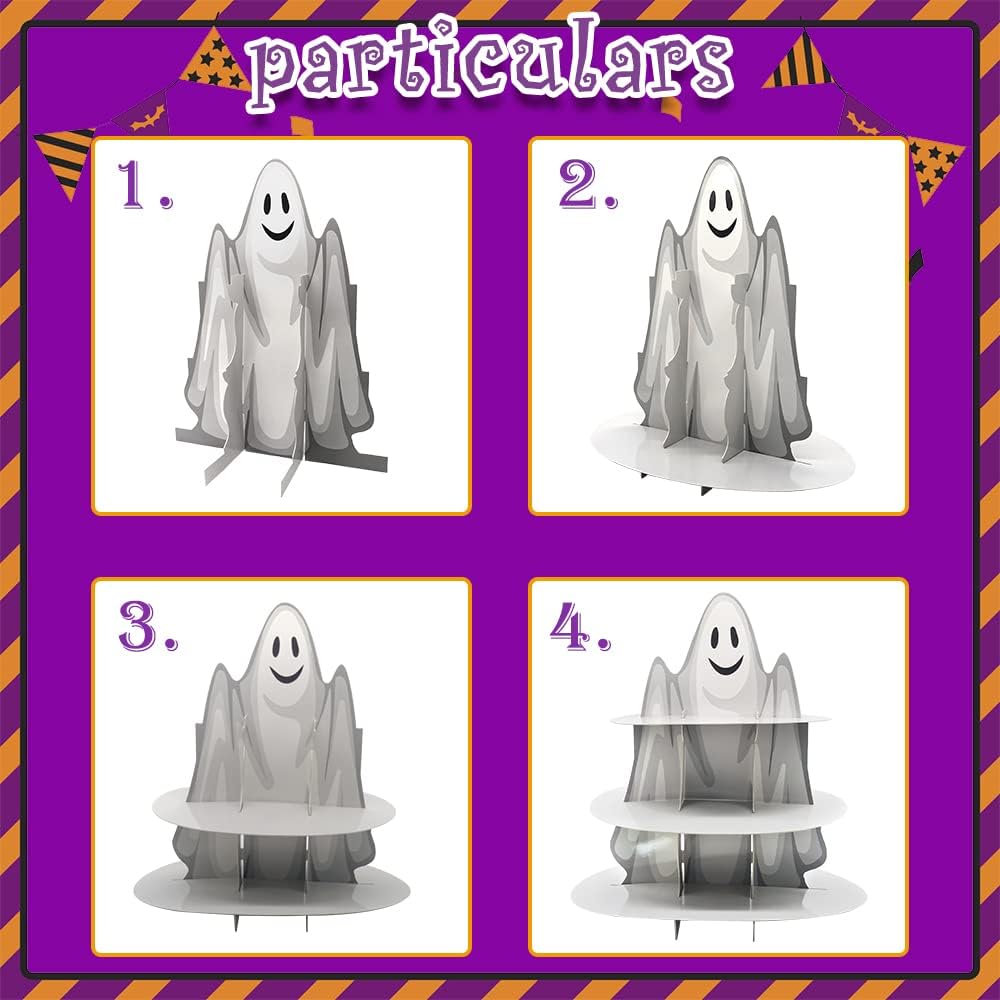 • 『HIGH QUALITY MATERIAL』: Halloween cupcake tower using strong cardboard material, non-toxic, odorless, reusable, bright in color and environmentally friendly. The cross structure that makes the Halloween ghost cupcake tower more stable. Halloween cake tower holders don't bend easily and can be used more than once. If the surface gets dirty, just wipe it with a damp cloth and it will look new.
