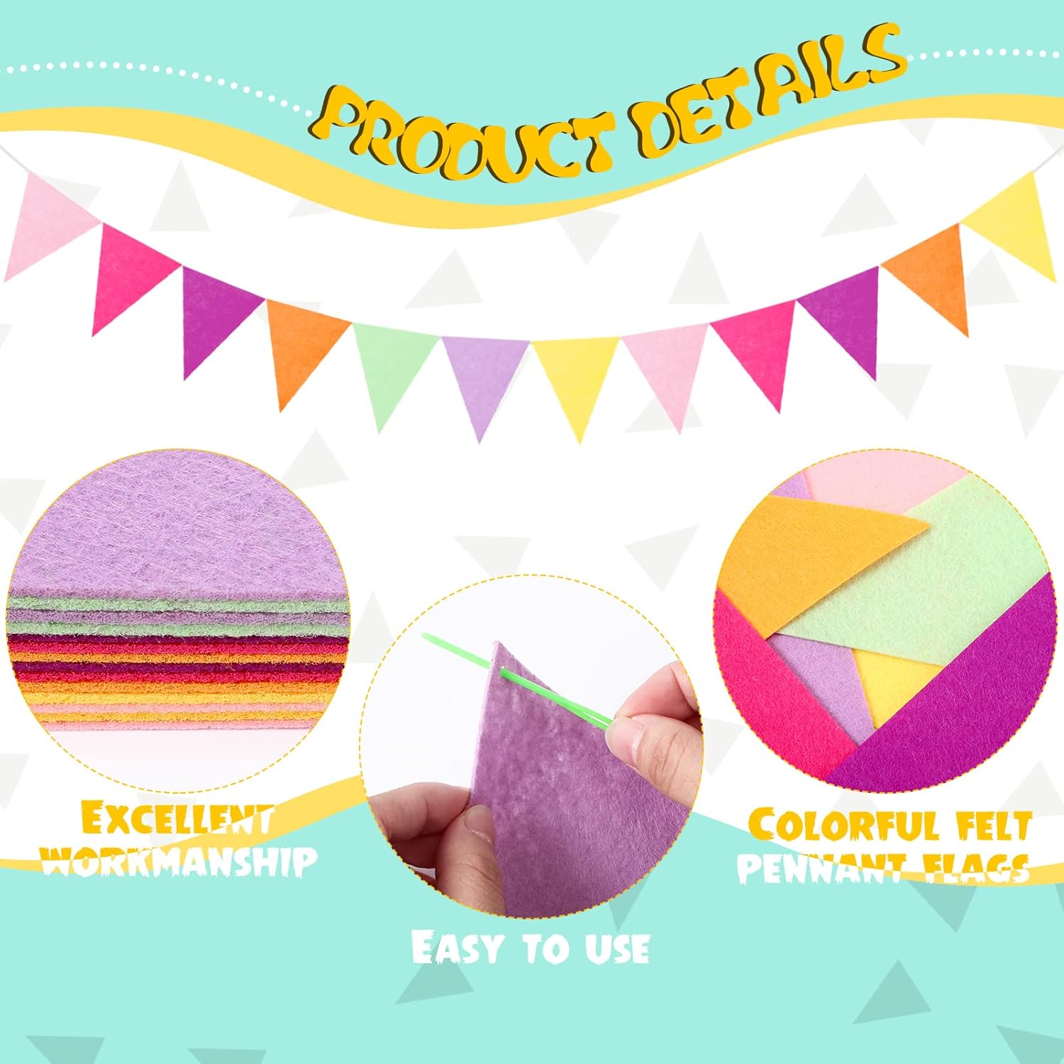 • Soft material: the tassel garland is made of quality thread which has soft and smooth tactility, these felt pennant flags are made of felt fabric (non-woven fabric), which are not easy to break so that you can keep them for a long time; These felt balls are made of wool fiber and are fully hand-felted, soft and comfortable that won't hurt your hand