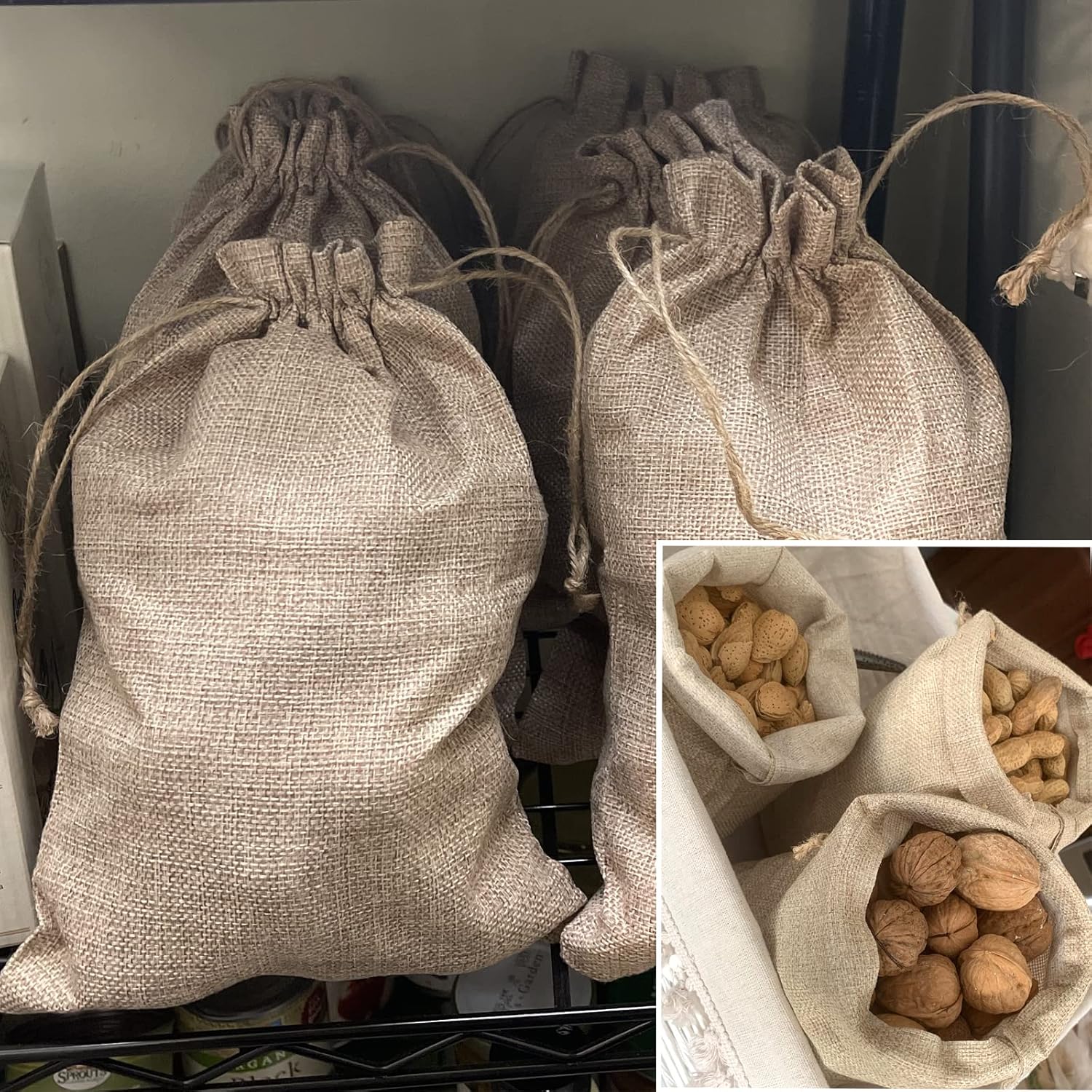 • WELL CONSTRUCTED - Our 8x12 inch drawstring gift bags are made out of high-quality linen material, not only are they pretty, they are silky soft, densely woven, reusable and not easily torn. Burlap bags have a smooth texture and the overall effect is refined rustic.