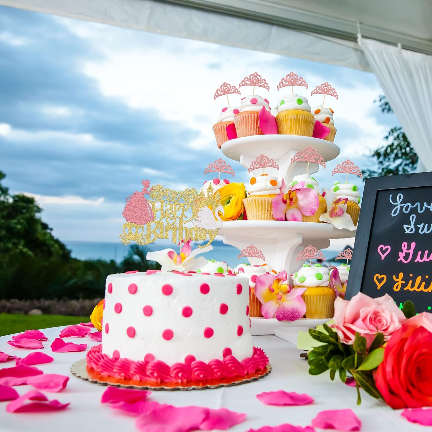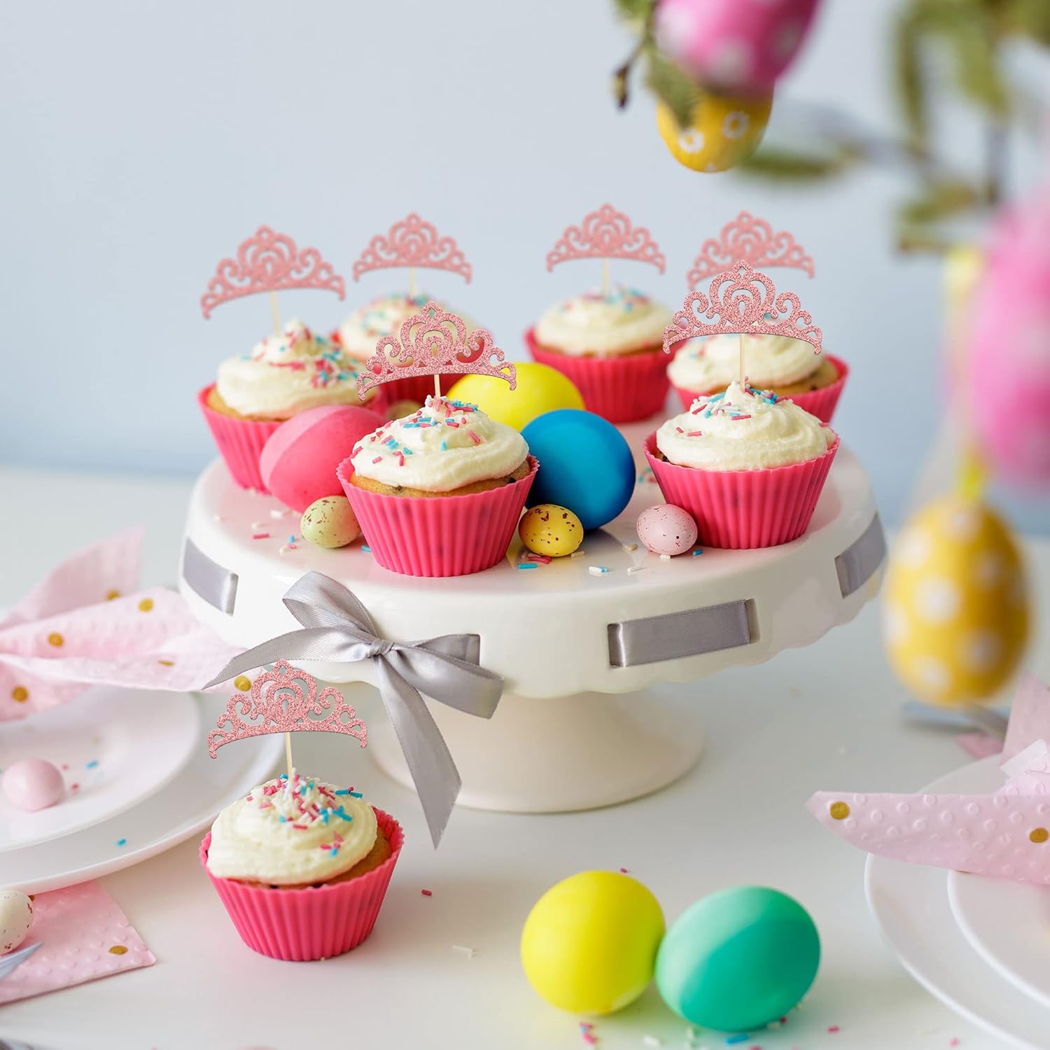 Gyufise 24Pcs Rose Gold Princess Crown Cupcake Toppers Glitter Princess Cake Pick Decorations for Wedding Girl Birthday Baby Shower Party Decorations