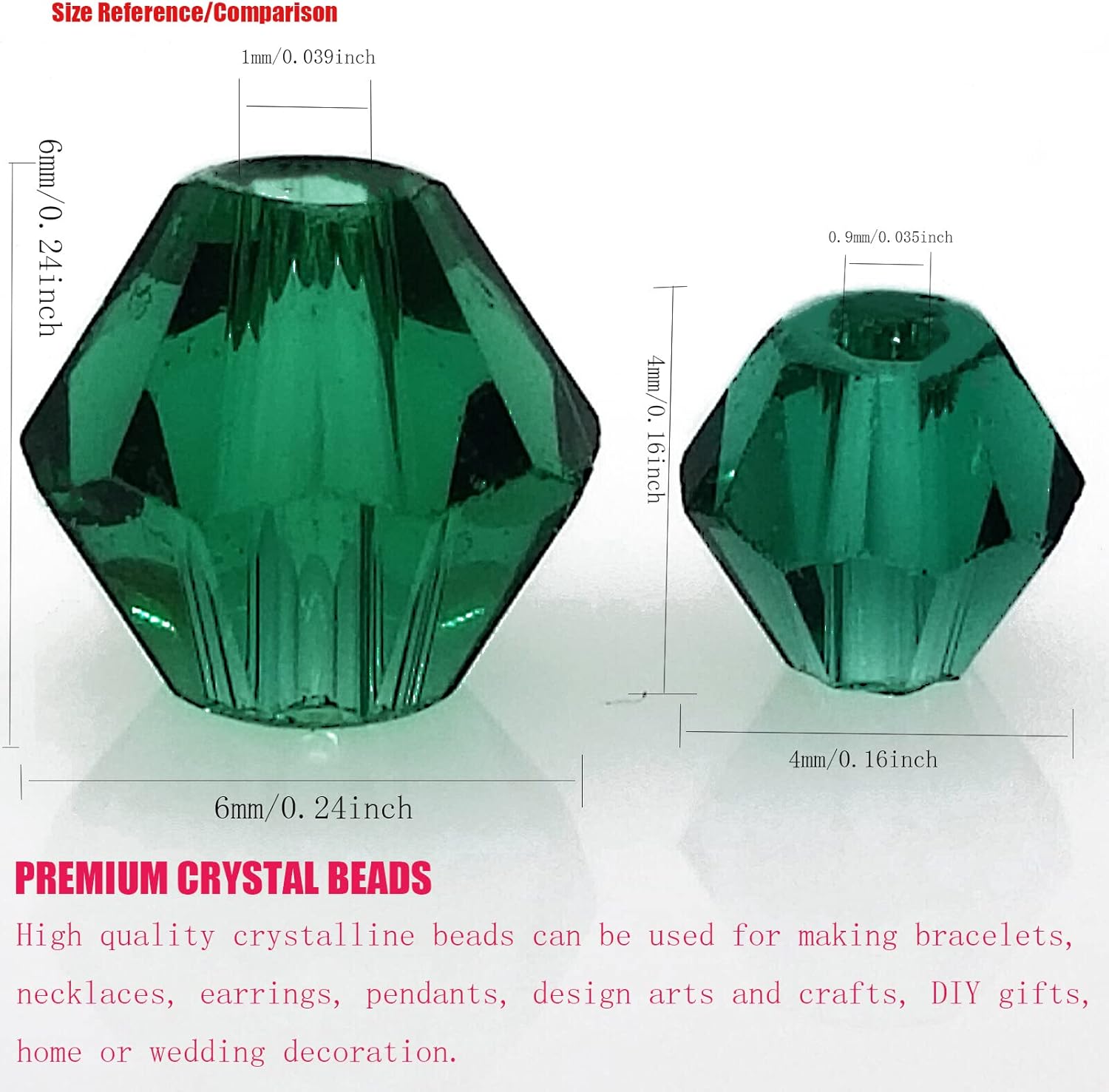• 【PACKAGING and SIZE】 Package includes 1800Pcs 4mm Bicone faceted crystal glass beads in green color.Bead size: 4mm (or ~ 0.16 inch); Hole diameter ~ 0.9mm ( ~ 0.035 inch).In addition, we provide you with some stretchy cord and add an organza bag.Let your family and friends enjoy DIY happy time together.Kindly note: Please make sure this small bead size meets your needs before placing an order,thank you.