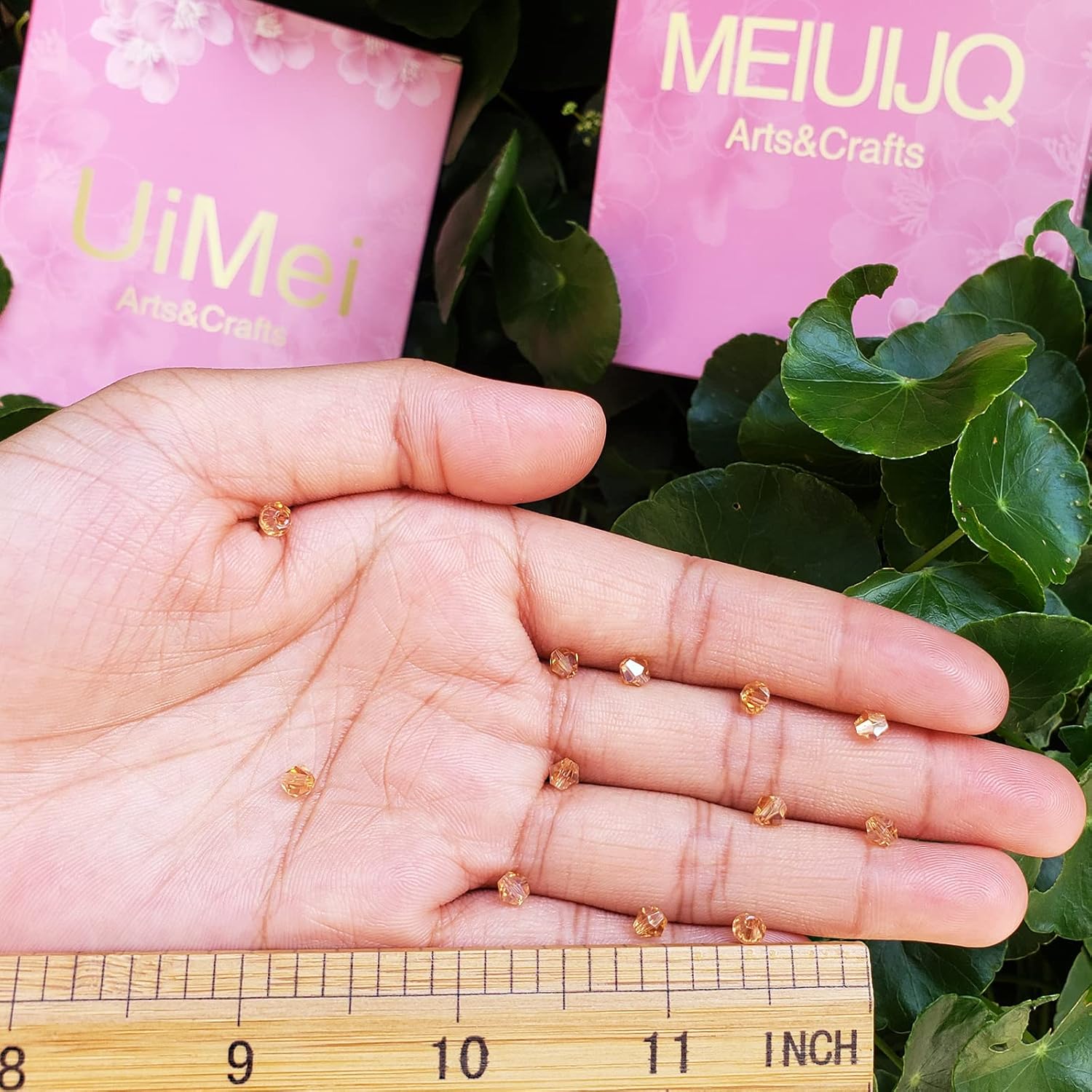 • 【PACKAGING and SIZE】 Package includes 1800Pcs 4mm Bicone faceted crystal glass beads in gold champagne AB color.Bead size: 4mm (or ~ 0.16 inch); Hole diameter ~ 0.9mm ( ~ 0.035 inch).In addition, we provide you with some stretchy cord and add an organza bag.Let your family and friends enjoy DIY happy time together.Kindly note: Please make sure this small bead size meets your needs before placing an order,thank you.