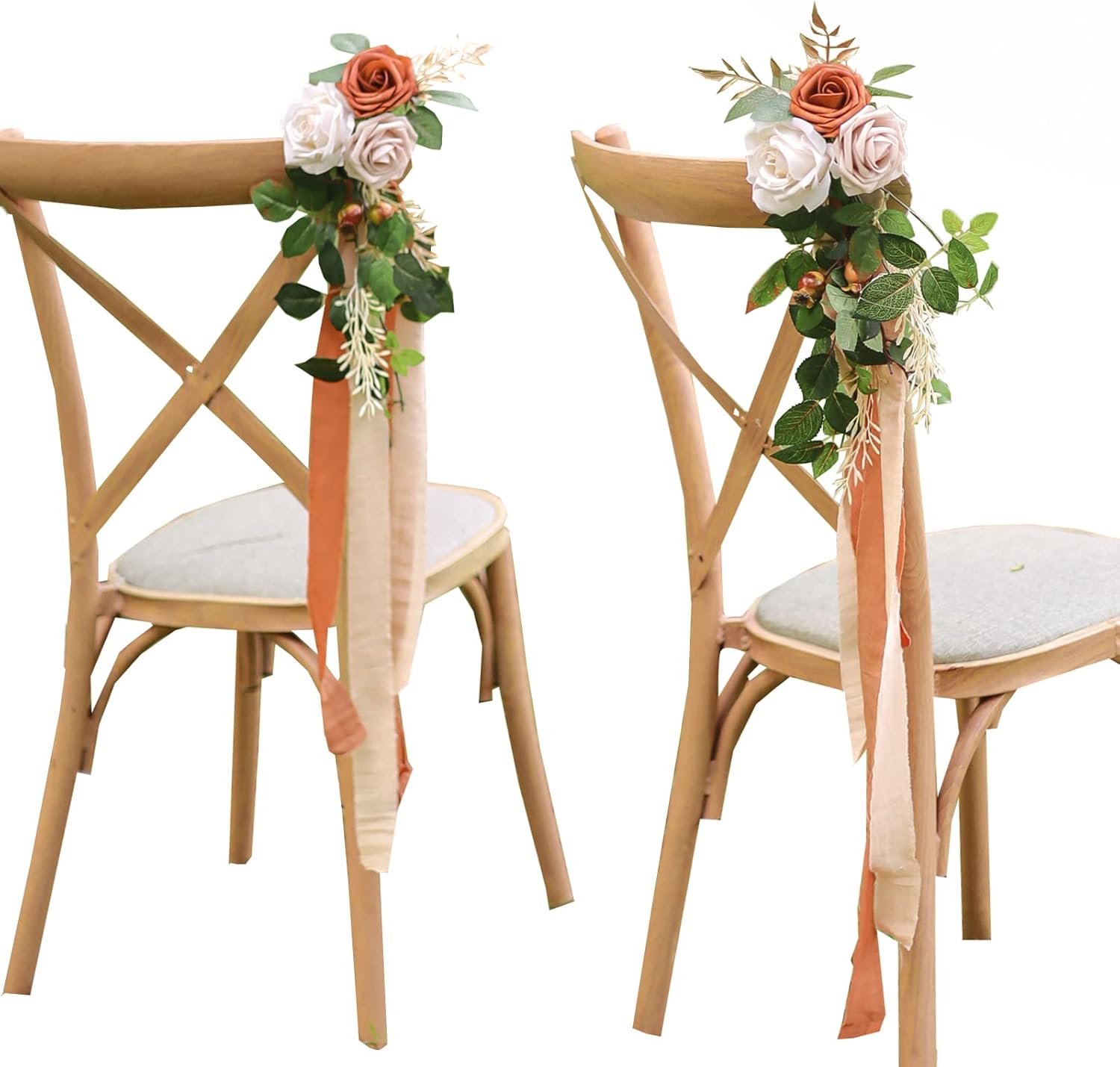 Lookein Pew Flowers for Wedding Ceremony Chair Decorations Set of 8 Aisle Decorations Bench Decoration Wedding Aisle Chair Decoration, Rustic Terracotta
