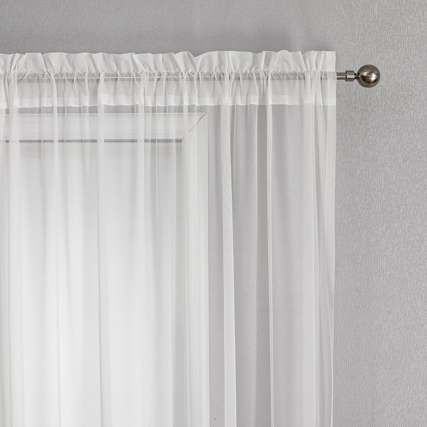 • Each package includes: 2 pieces white sheer curtains made of high quality faux linen (100% polyester) sheer fabric. Window panel measures width 54" x length 63".