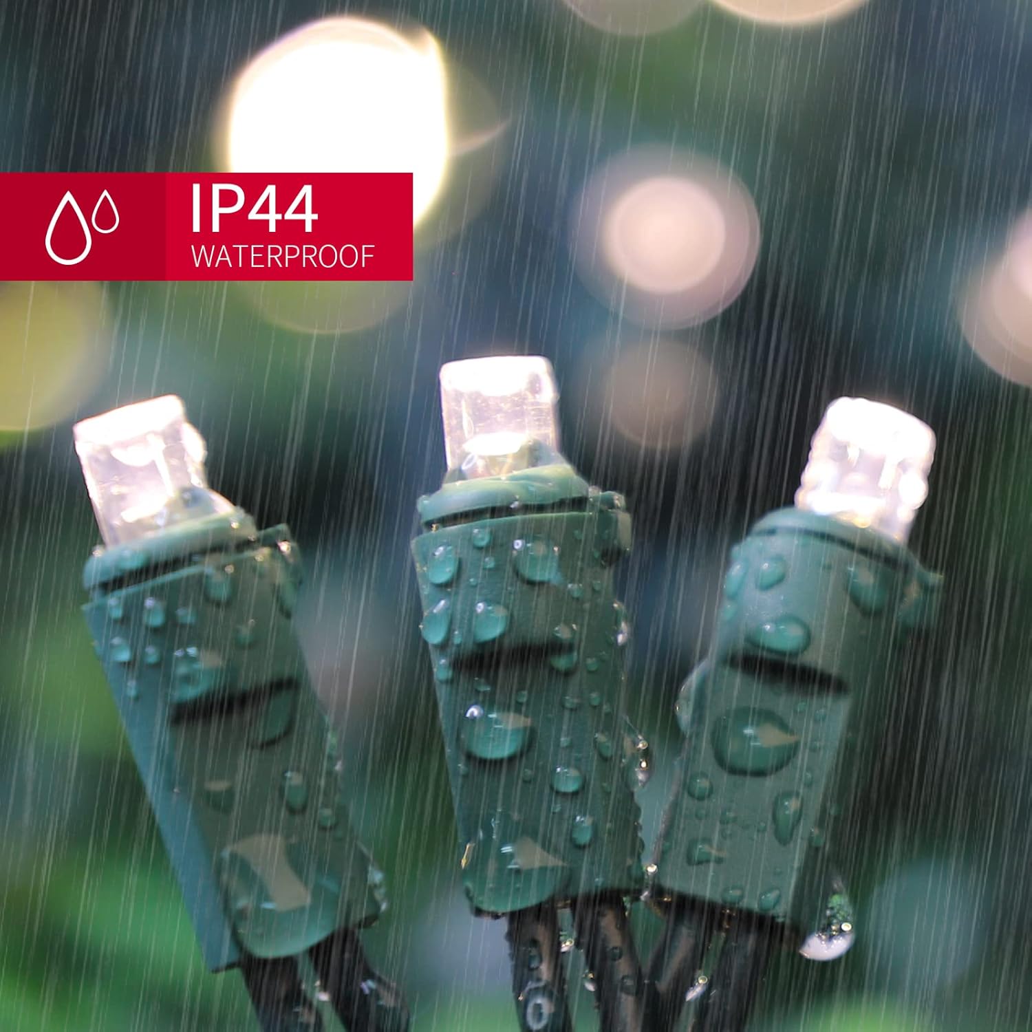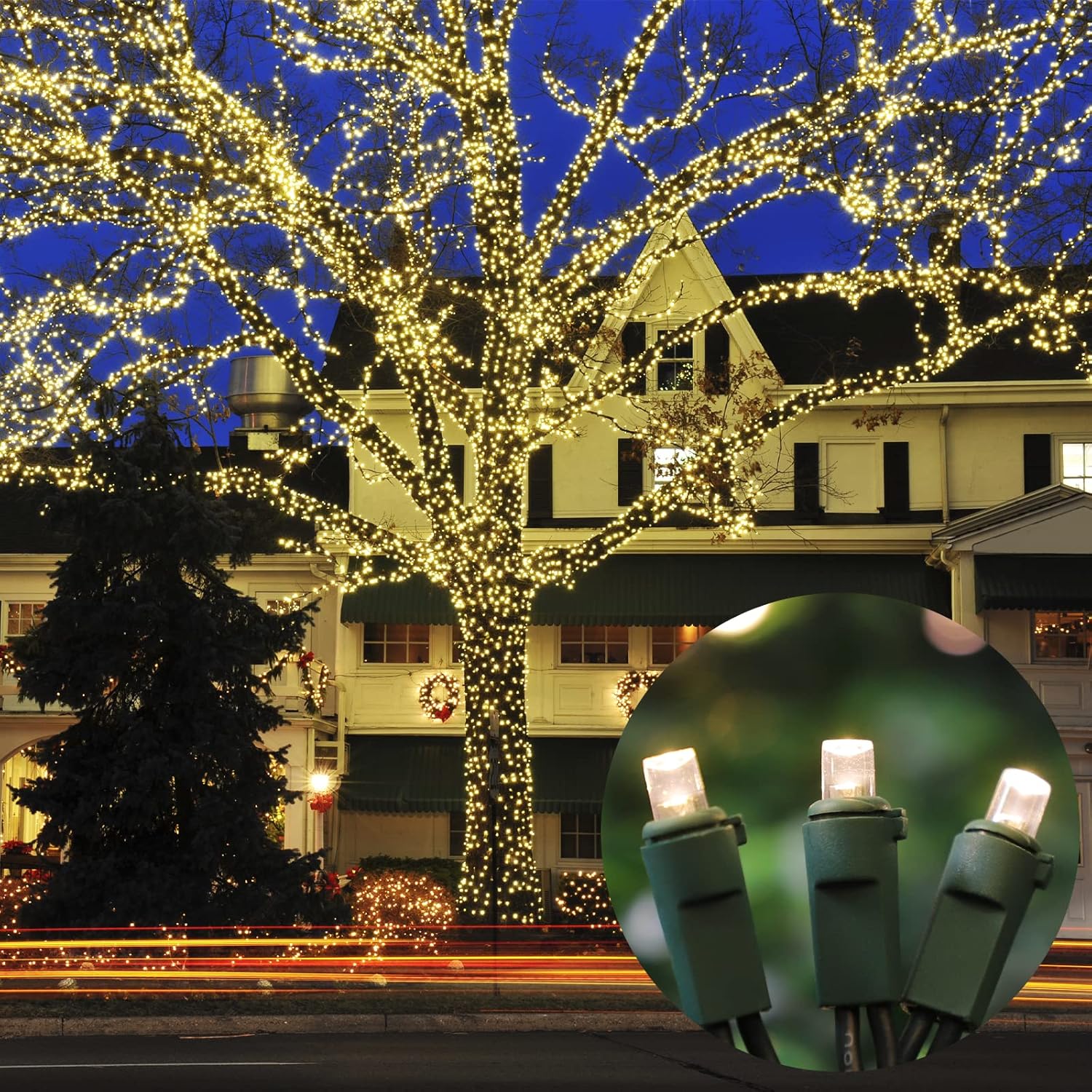 • High quality: Commercial grade 22 gauge wire with a pure copper core, wrapped in rubber that is infused with fire resistant materials, for longer runs and extended life. These 5mm feature a concave lens design that disperses uniform light in all directions for amazing color. You never have to worry about the string lights being buried in the bush.