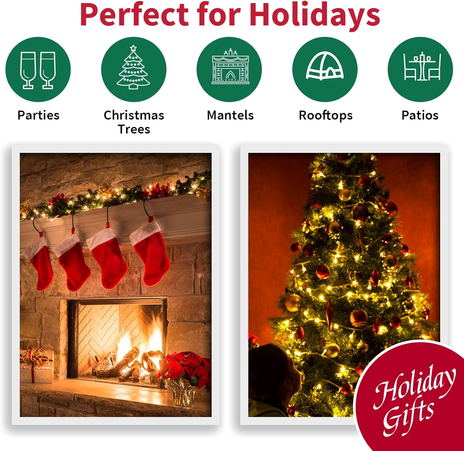• Safe to use: Just plug or unplug to turn the light on or off. There is a fuse inside the plug to protect the lamp from burning out. UL588 safety certification, you can rest assured to use, very safe.The little bulbs in green wire color create a 360-degree flash that's super bright and festive, brightening up your holiday with warm sunlight and enough brightness.