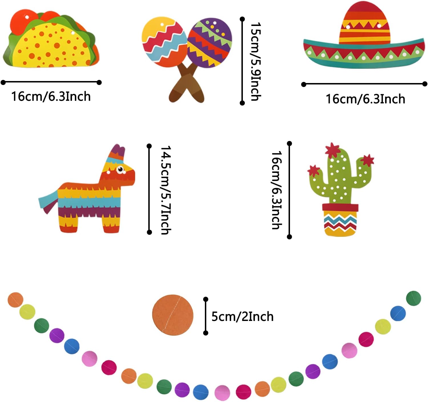• Included Components : FIESTA Garland, Paper pompoms, Mexican Paper Fans, Paper hollow fans, Circle Paper Garland