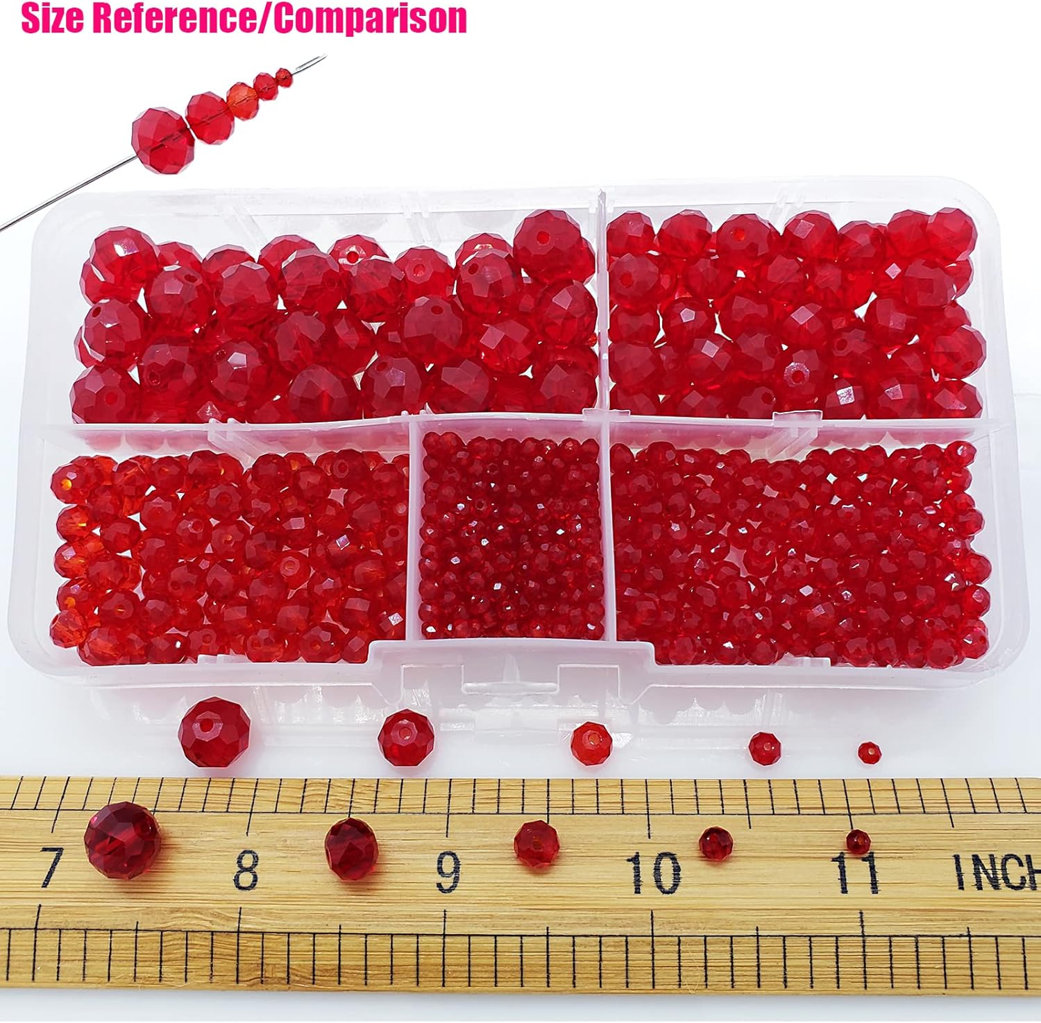 • 【PACKAGING and SIZE】Package includes 810Pcs red rondelle crystal glass beads in 5 different sizes ,400pcs 2mm,200pcs 4mm,100pcs 6mm,65pcs 8mm and 45pcs 10mm faceted rondelle crystal glass beads.Sufficient quantity and various sizes to meet your various needs, you can combine them together to create delicate handicrafts according to your own preference.In addition, we provide you with some stretchy cord and add an organza bag.Let your family and friends enjoy DIY happy time together.
