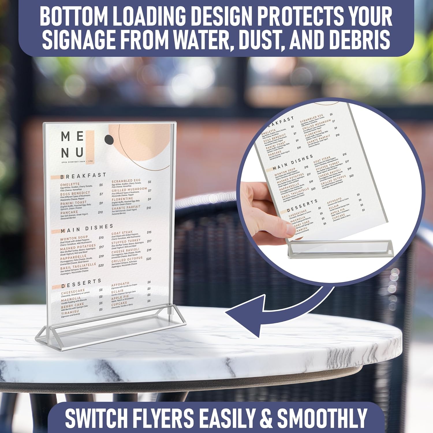 Silver Picture Frames Double-Sided, 6-Pack 5x7 Acrylic Table Number Holders, Clear Easel Stands for Signs, Silver Frames for Wedding Table Numbers, Menu Holders, Photo Displays for Events and Décor