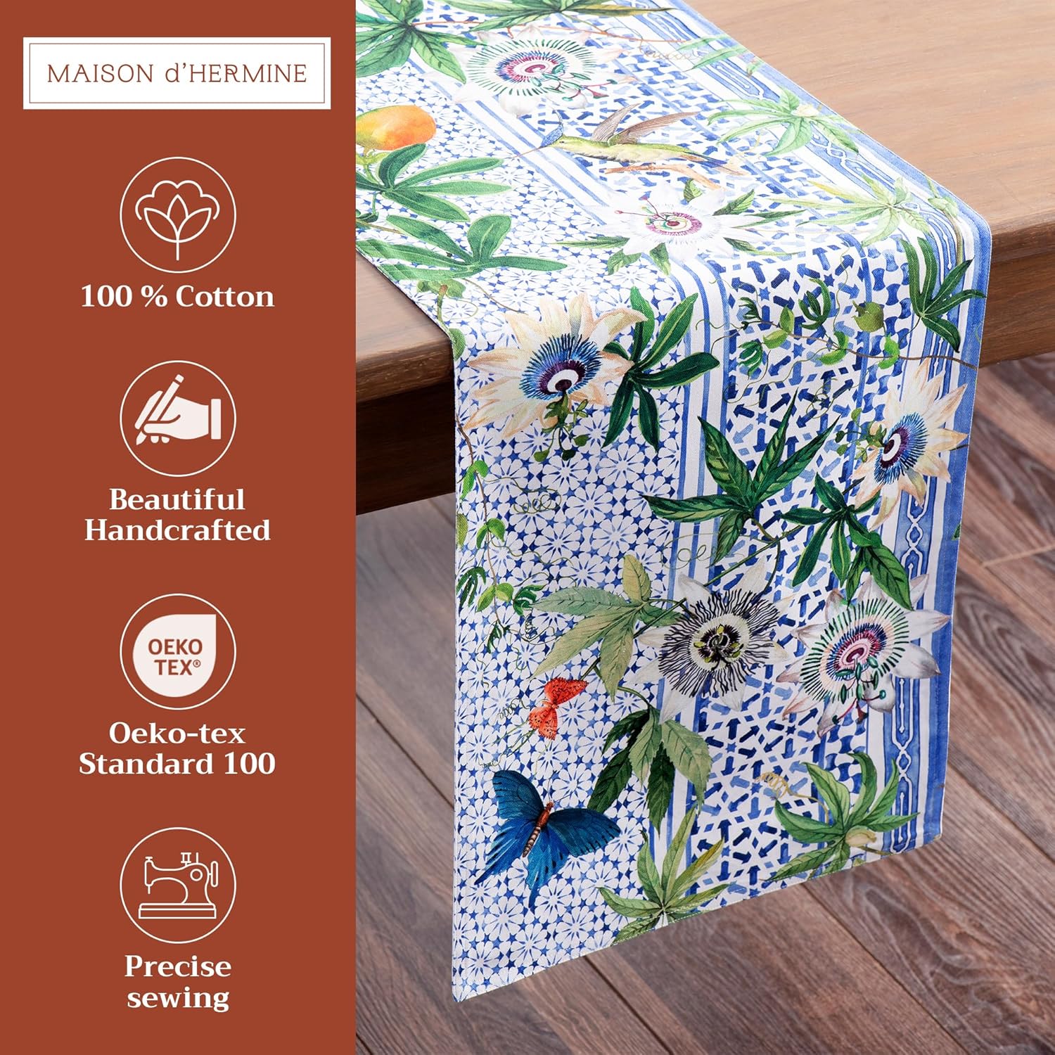Maison d' Hermine Table Runner 100% Cotton Double Layer Table Runners 108 inches Long Decorative for Home Kitchen Dining Party Wedding Bridal Shower Spring Summer (Passiflora, 14.50" x 108")