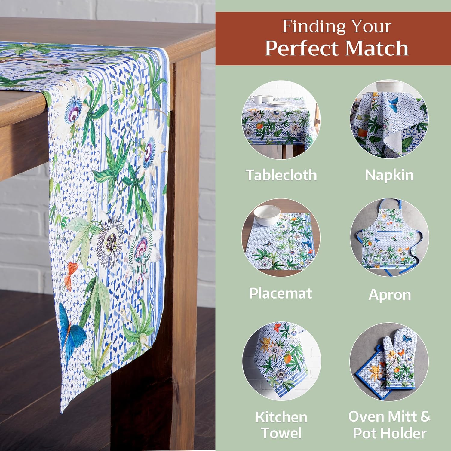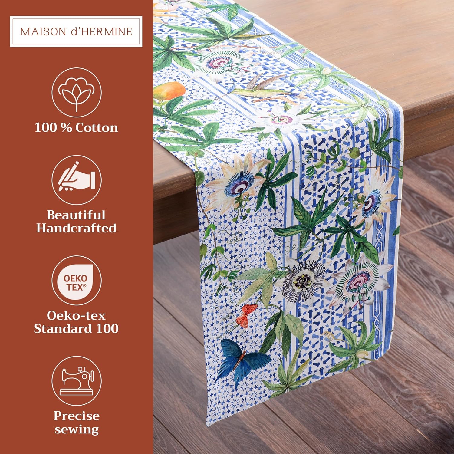 Maison d' Hermine Table runner 100% Cotton Single Layer Table Runners 72 inches long Decorative for Home Kitchen Dining Party Baby Shower Wedding Bridal Shower Spring Summer (Passiflora, 14.50" x 72")