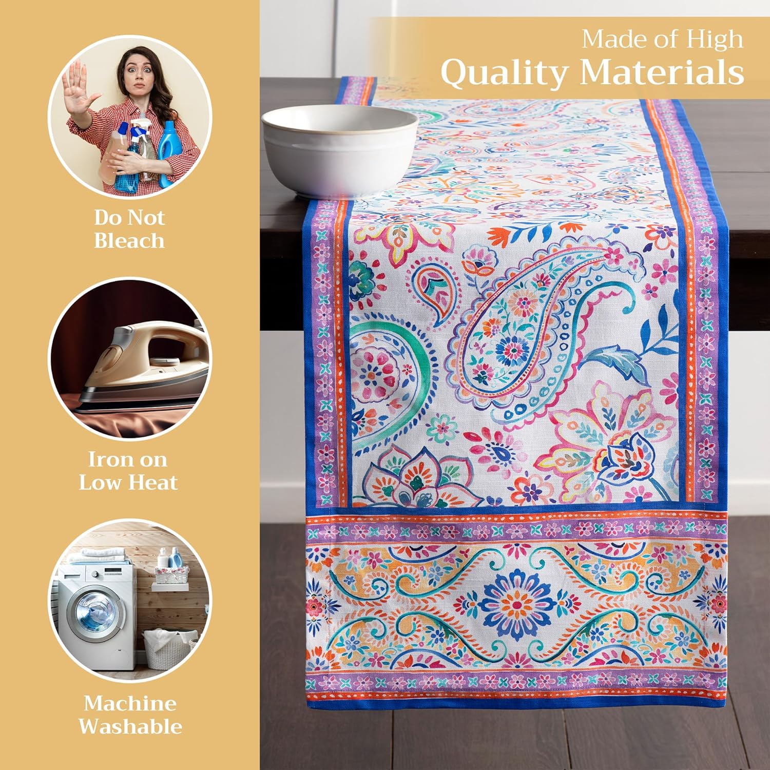 • Unique design: Each table runners features watercolor artwork inspired by traditional European motifs, with intricate details and vibrant hues. Designed in Europe and made in India, it captures the warmth and elegance of artisan-crafted décor.
