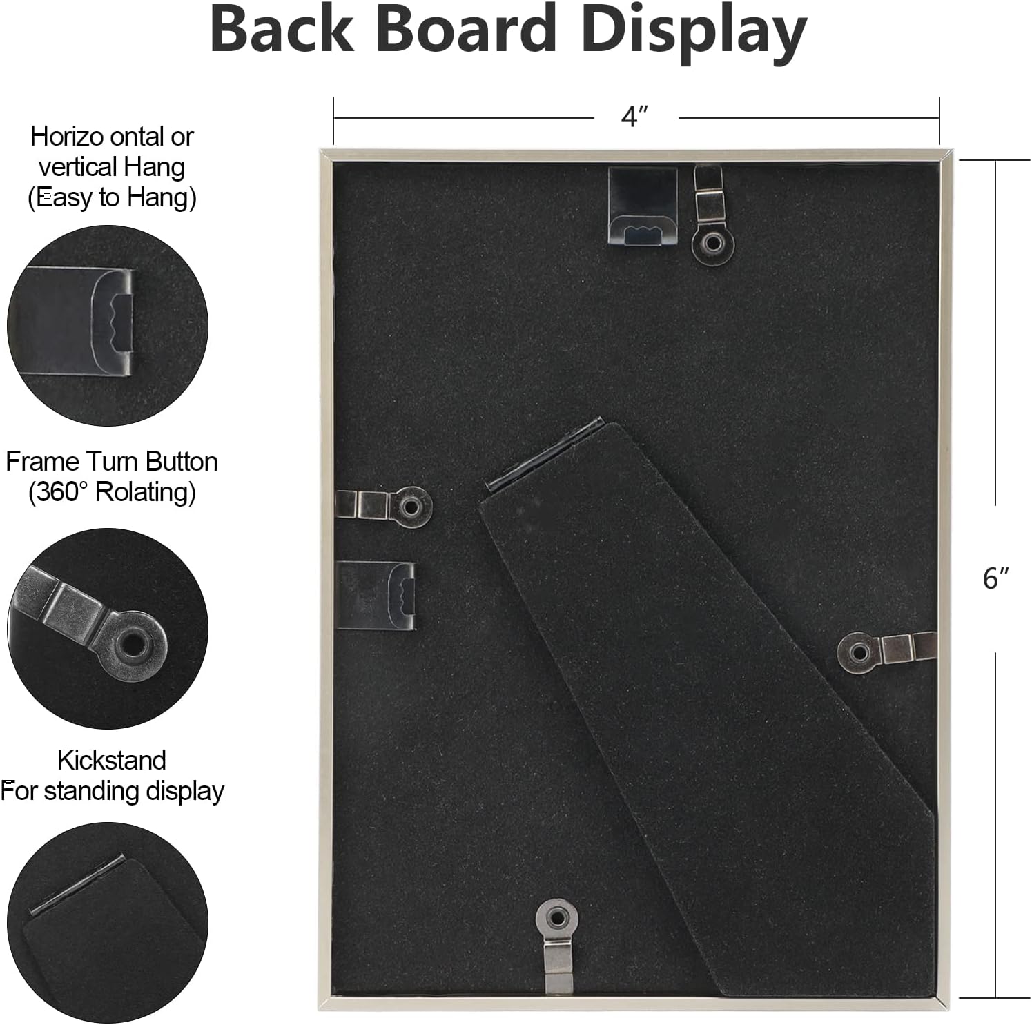 4x6 Picture Frame Champagne Brushed Modern Simple Thin Aluminum Metal Photo Frame with HD Real Glass, Display for Tabletop and Wall Collage. (2 Pack)