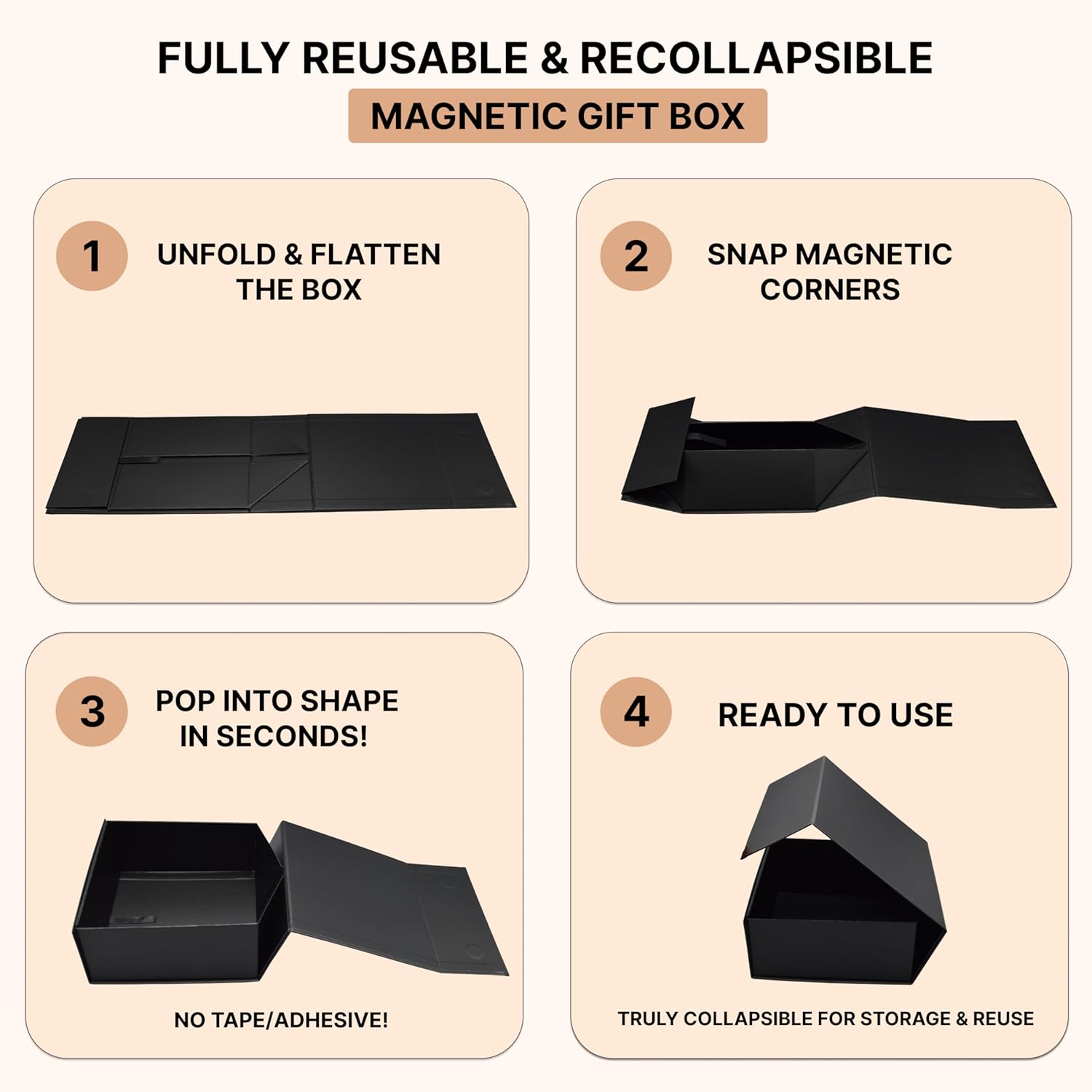 • π—˜π—”π—¦π—¬ π—¦π—˜π—§π—¨π—£ π—ͺπ—œπ—§π—› π— π—”π—šπ—‘π—˜π—§π—œπ—– π—–π—Ÿπ—’π—¦π—¨π—₯π—˜, 𝗑𝗒 π—§π—”π—£π—˜ π—‘π—˜π—˜π——π—˜π——: Simply unfold the box, push down a flap, and pop the gift box into shape without tools or tape! The magnetic closure automatically closes and secures the box in shape with a satisfying and luxurious magnetic SNAP!