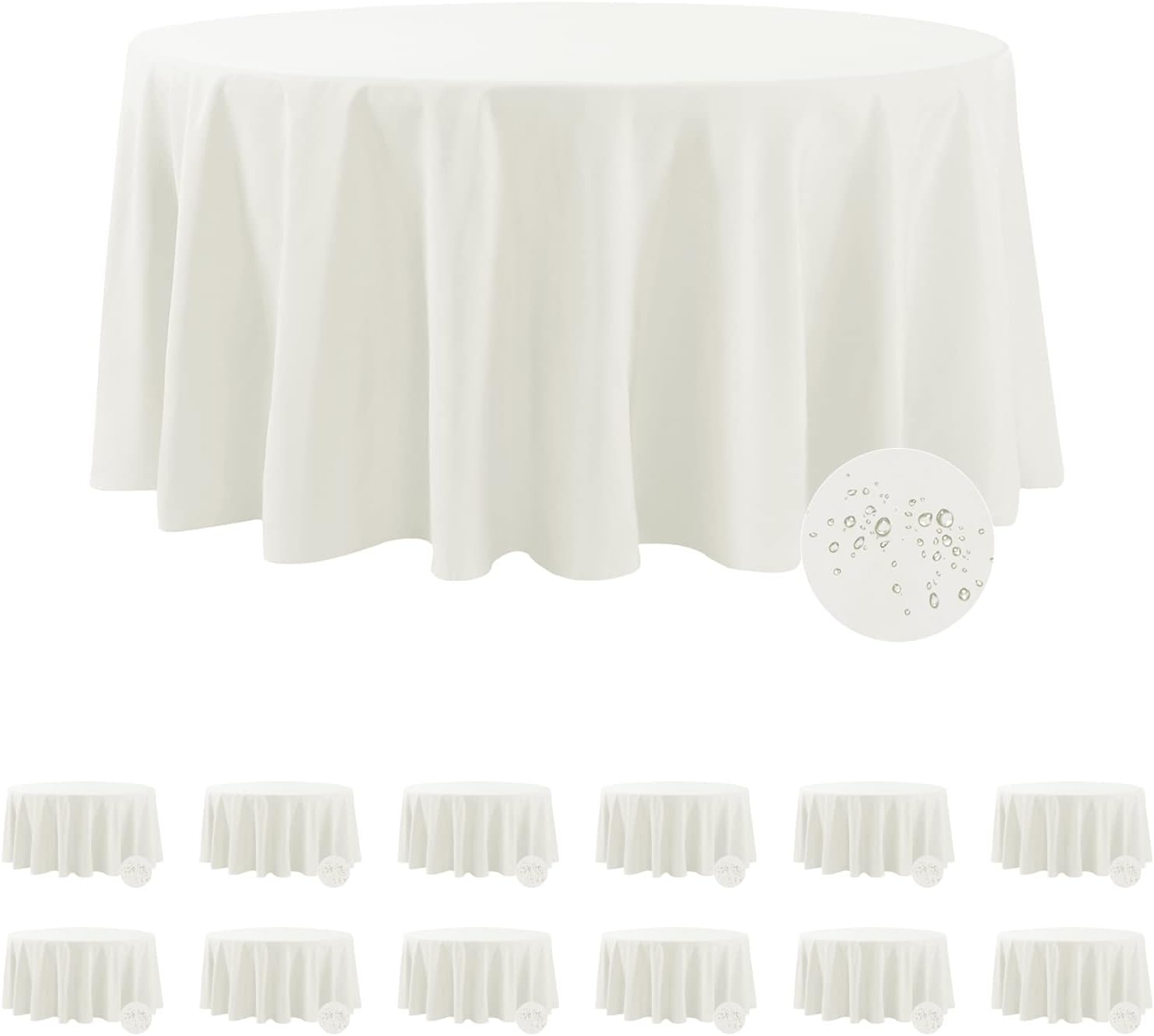 Fokitut 12 Pack Waterproof Round Tablecloth, 120 Inch, Stain Resistant and Wrinkle Polyester Table Cloth, Fabric Table Cover for Kitchen Dining, Wedding, Party, Holiday Dinner-Ivory