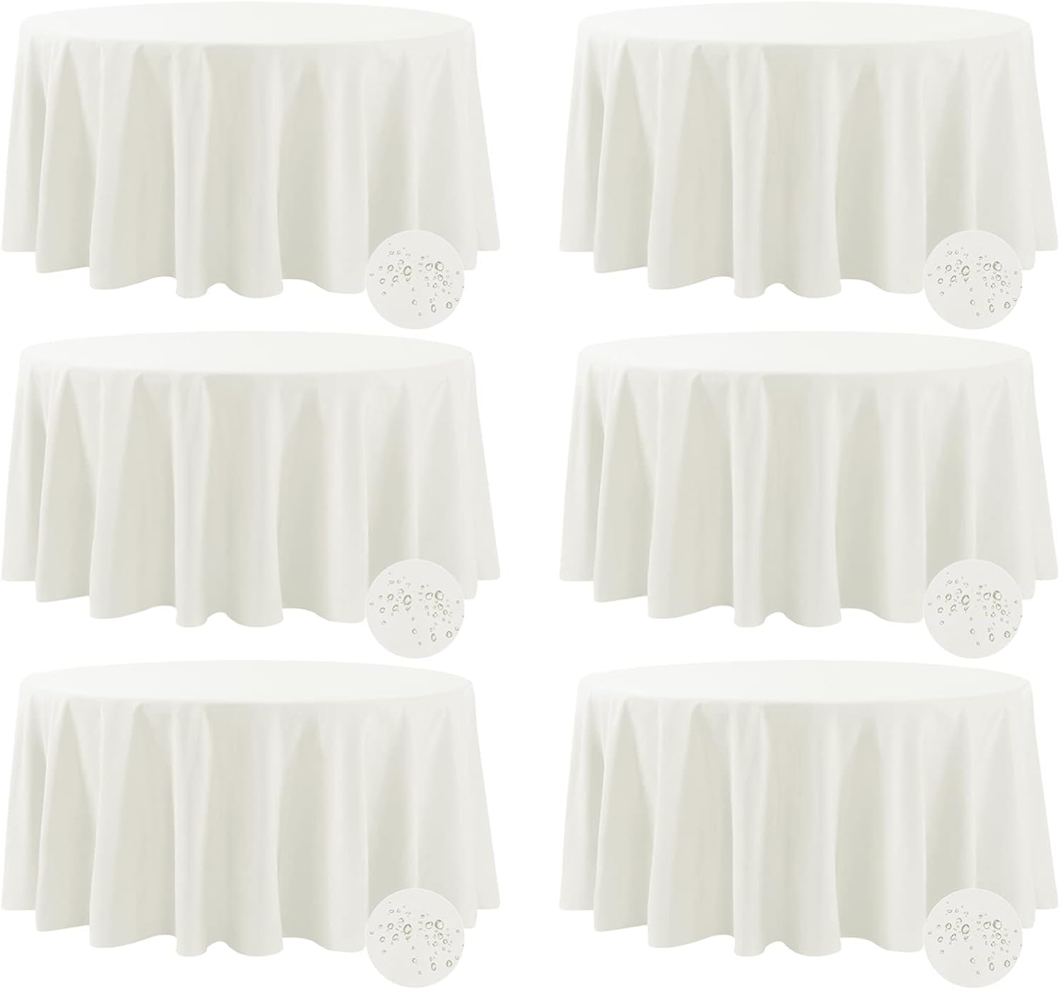 Fokitut 6 Pack Waterproof Round Tablecloth, 108 Inch, Stain Resistant and Wrinkle Polyester Table Cloth, Fabric Table Cover for Kitchen Dining, Wedding, Party, Holiday Dinner-Ivory