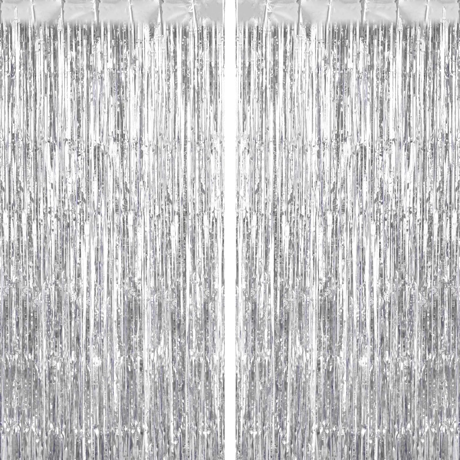 2 Pack Silver Fringe Curtains Foil Shiny Fringe Backdrop Tinsel Door Streamers Foil Curtains for Birthday Wedding Engagement Bridal Shower Celebration Party Decorations Large