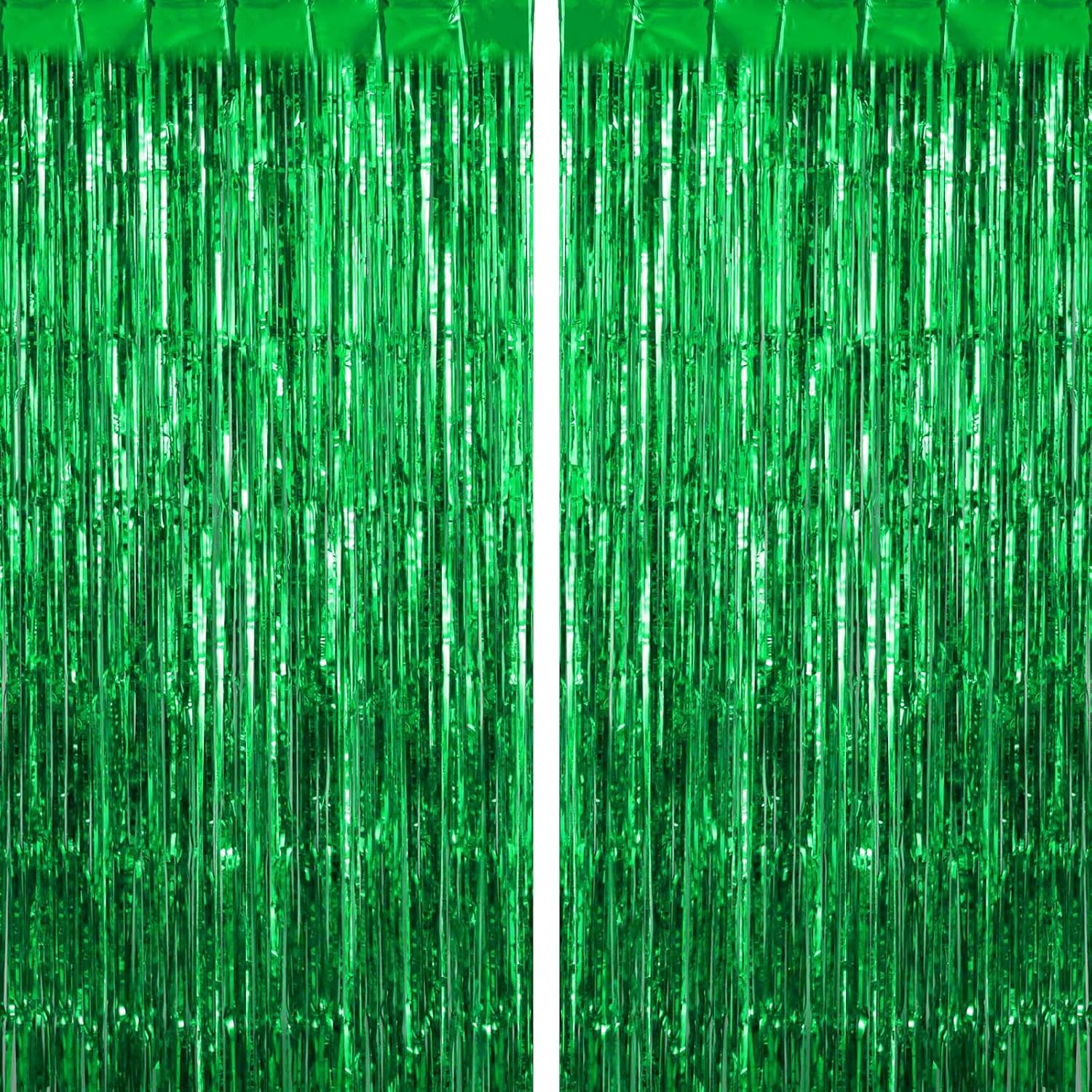 2 Pack Green Fringe Curtains Foil Shiny Fringe Backdrop Tinsel Door Streamers Foil Curtains for Birthday Wedding Engagement Bridal Shower Celebration Party Decorations Large