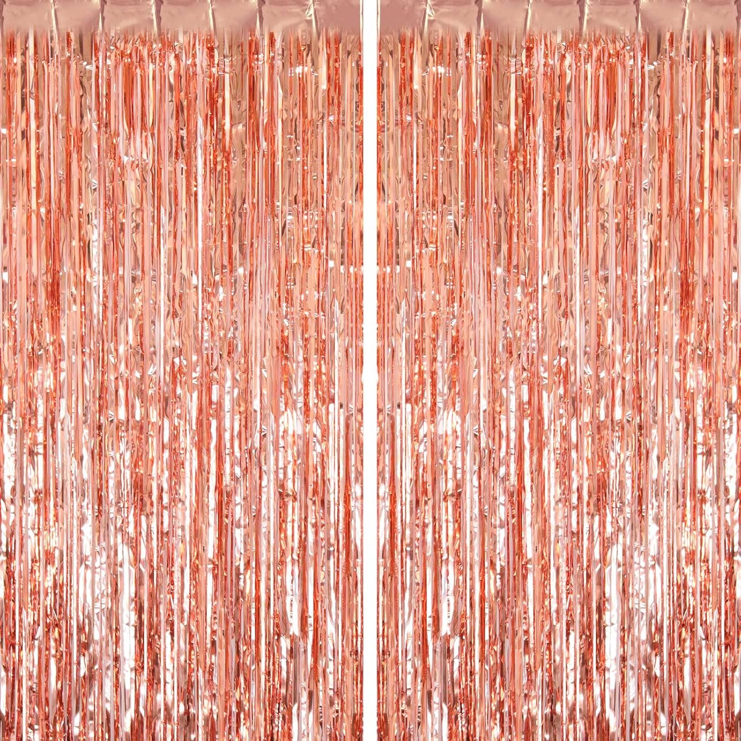 2 Pack Rose Gold Fringe Curtains Foil Shiny Fringe Backdrop Tinsel Door Streamers Foil Curtains for Birthday Wedding Engagement Bridal Shower Celebration Party Decorations Large