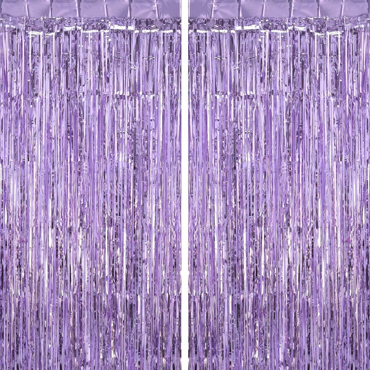 2 Pack Light Purple Fringe Curtains Foil Shiny Fringe Backdrop Tinsel Door Streamers Foil Curtains for Birthday Wedding Engagement Bridal Shower Celebration Party Decorations Large