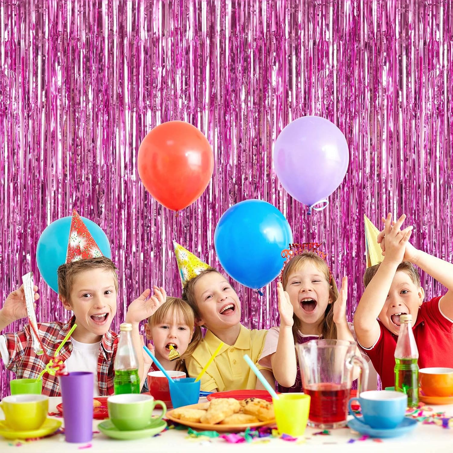 2 Pack Pink Fringe Curtains Foil Shiny Fringe Backdrop Tinsel Door Streamers Foil Curtains for Birthday Wedding Engagement Bridal Shower Celebration Party Decorations Large