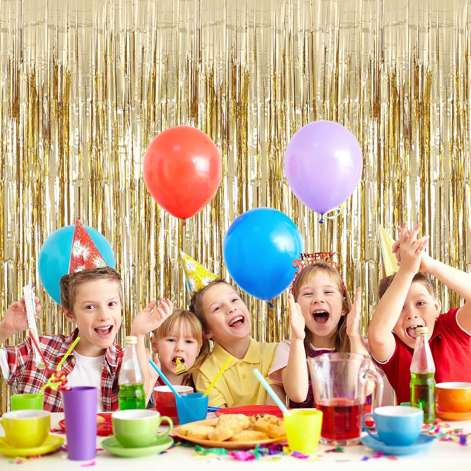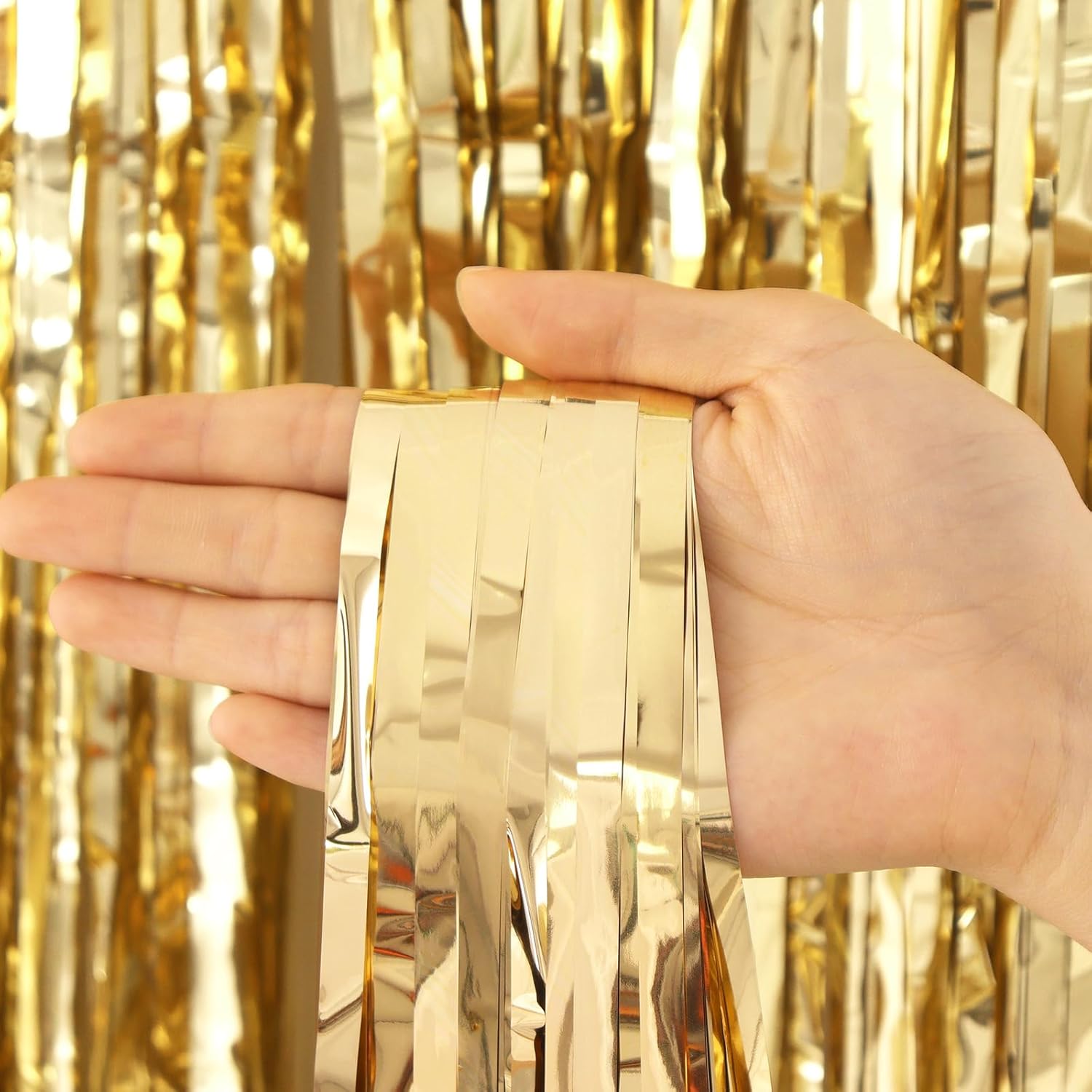 2 Pack Champagne Fringe Curtains Foil Shiny Fringe Backdrop Tinsel Door Streamers Foil Curtains for Birthday Wedding Engagement Bridal Shower Celebration Party Decorations Large