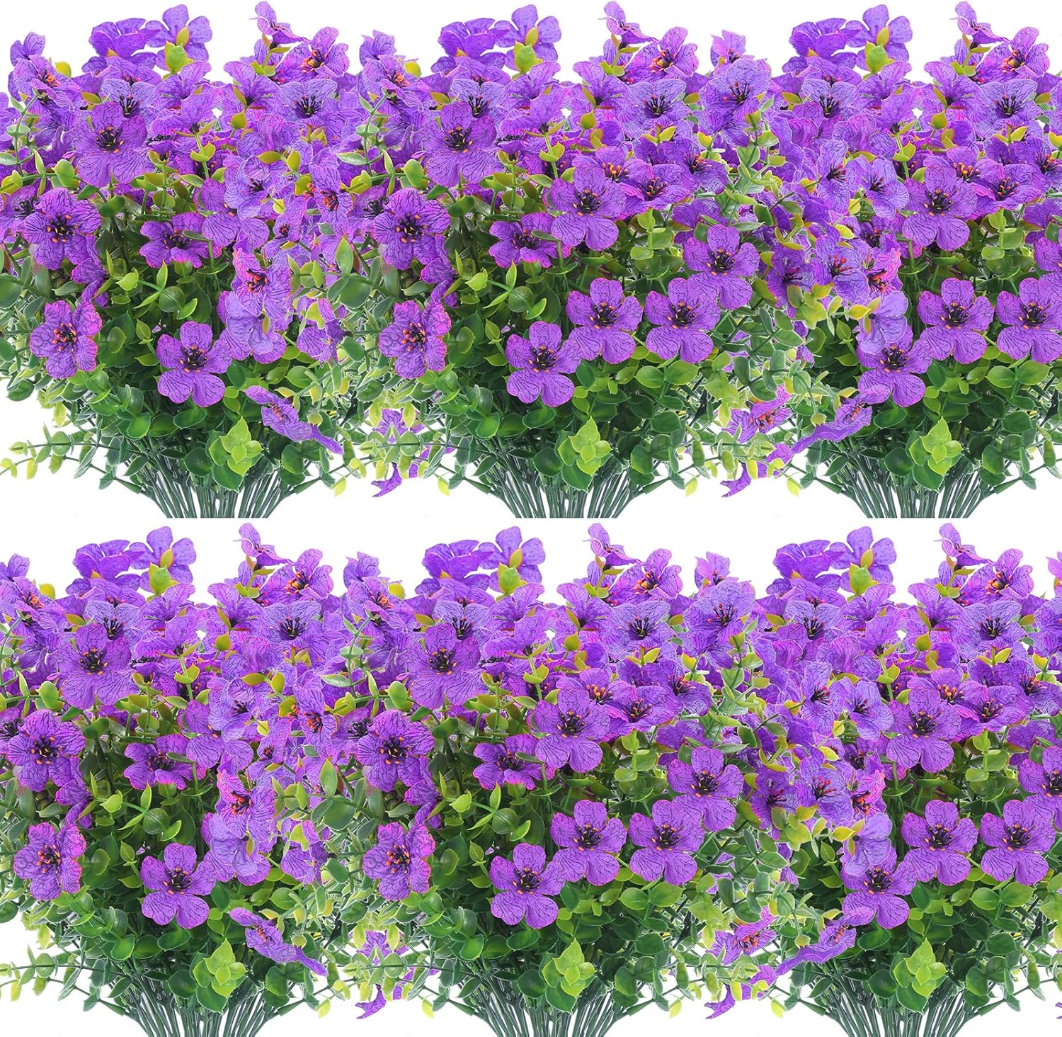 12 Bundles Artificial Flowers Outdoor UV Resistant Fake Plastic Plants Indoor Outside Hanging Plants Garden Porch Window Box Home Wedding Farmhouse Festive Shrub Decor (Purple)
