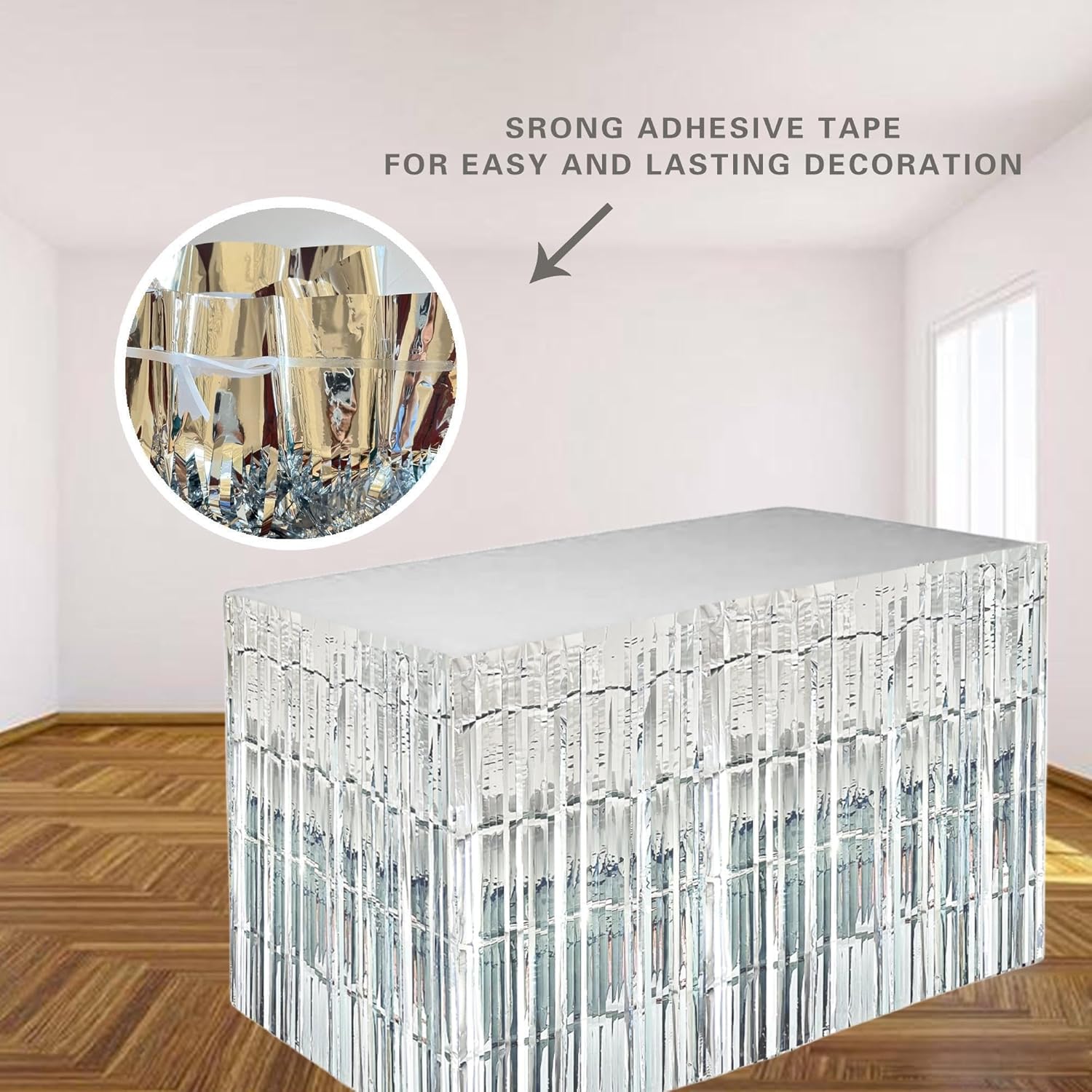 • 【EASY TO INSTALL】Each metallic fringe table skirts comes with self-adhesive tape on the top for easy attachment to your wall or table. just peel off the tape and then stick, easy and fast to install.