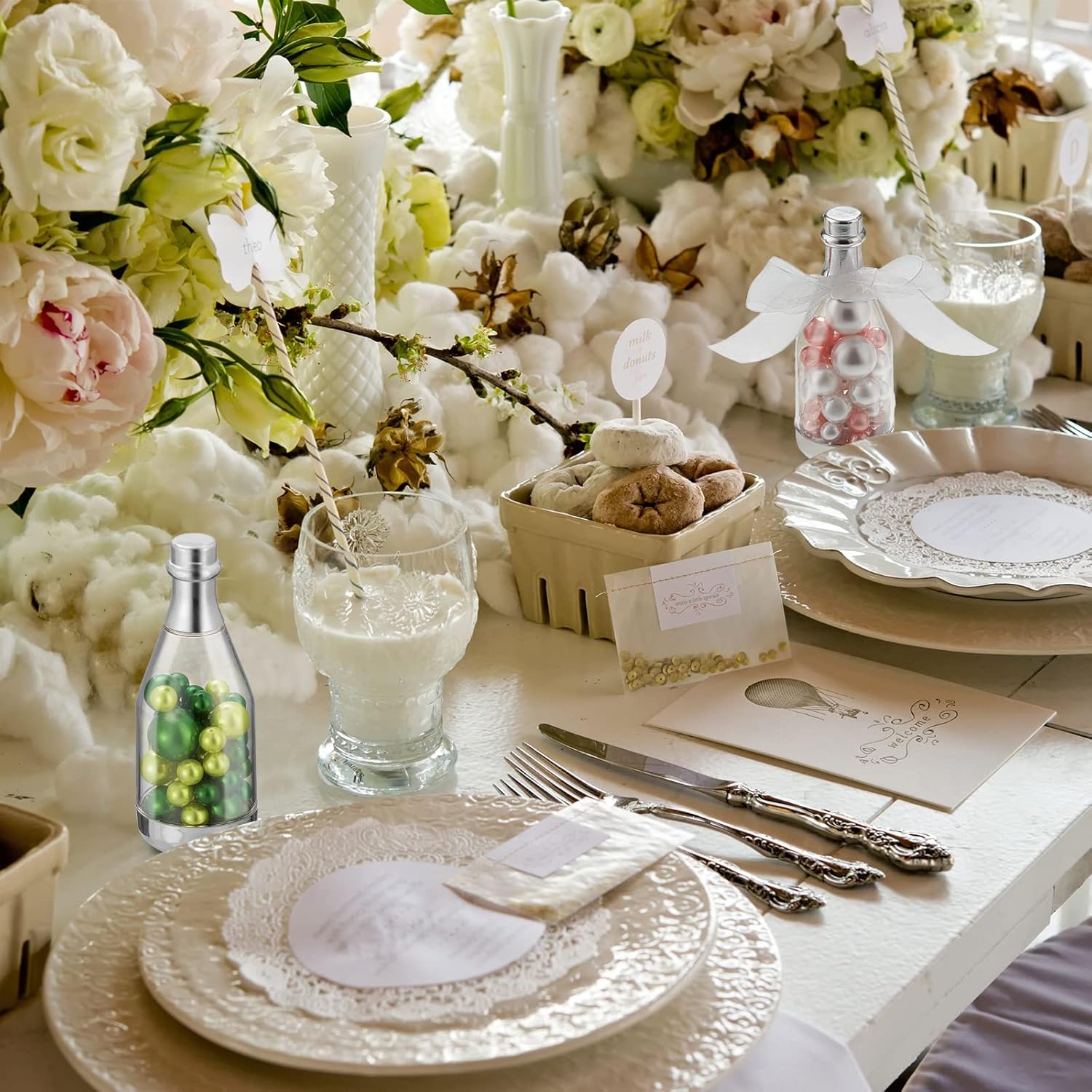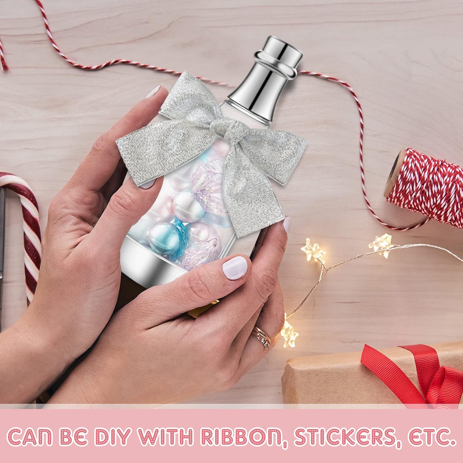 Cunhill 18 Pieces Mini Champagne Bottles Container Bulk Plastic Small Champagne Candy Bottles DIY Favor Mini Candy Jars Wedding Favors for Wedding Bridal Baby Shower Birthday(Clear and Silver)