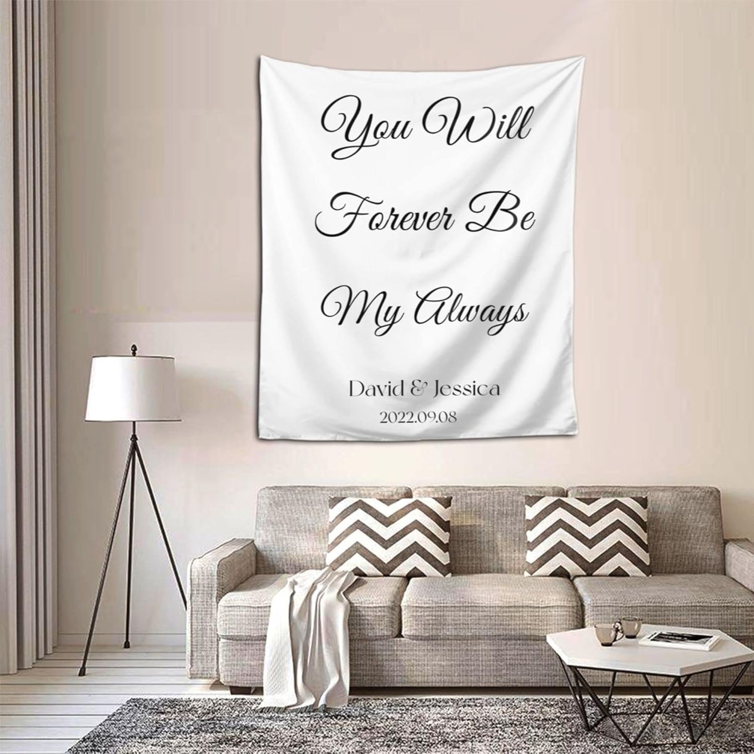 You Will Forever Be My Always Backdrop, Custom Tapestry with Names and Date, Personalized Calligraphy Wedding Banner for Ceremony, Rustic Sign, Reception Arch, Decor One Size