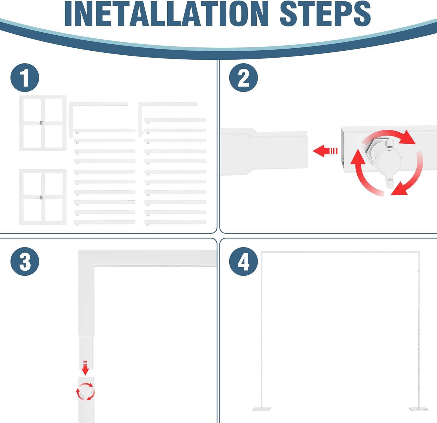 • 【Package Includes】Heavy duty white metal backdrop stand contains L-shaped tube, L-shaped tube with a screw, Short straight tube and 2pcs Rectangular base. Drape not included. These shiny photo booth square arch backdrop stand with unmatchable class and elegance will add more color and atmosphere of festivity to your party.