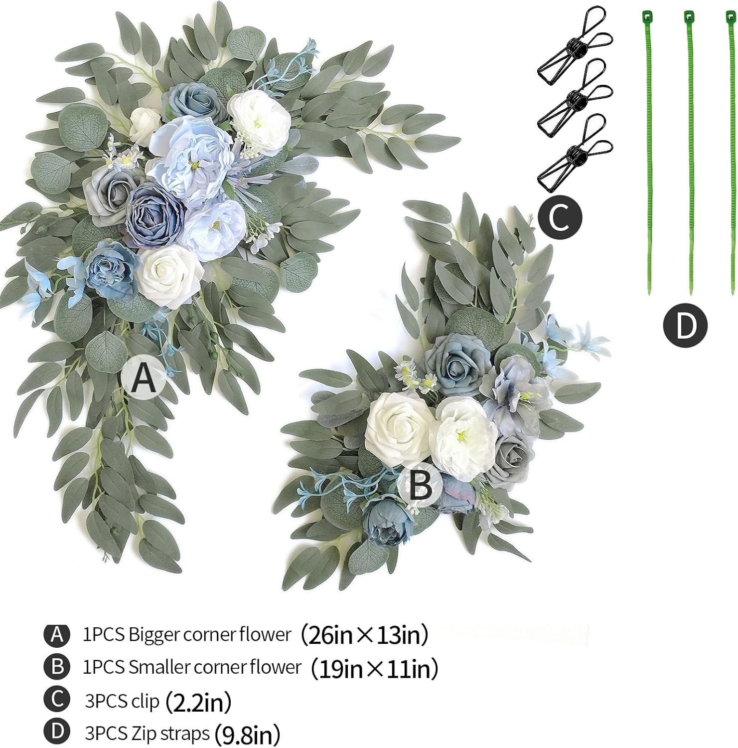 • ☘Material: This wedding flowers for arch is made of silk cloth and foam artificial flowers. They never wilt and look not only beautiful but very lifelike. Designed with a variety of elements for a rich sense of craftsmanship and design, perfect for your wedding arch decoration and welcome sign decoration.