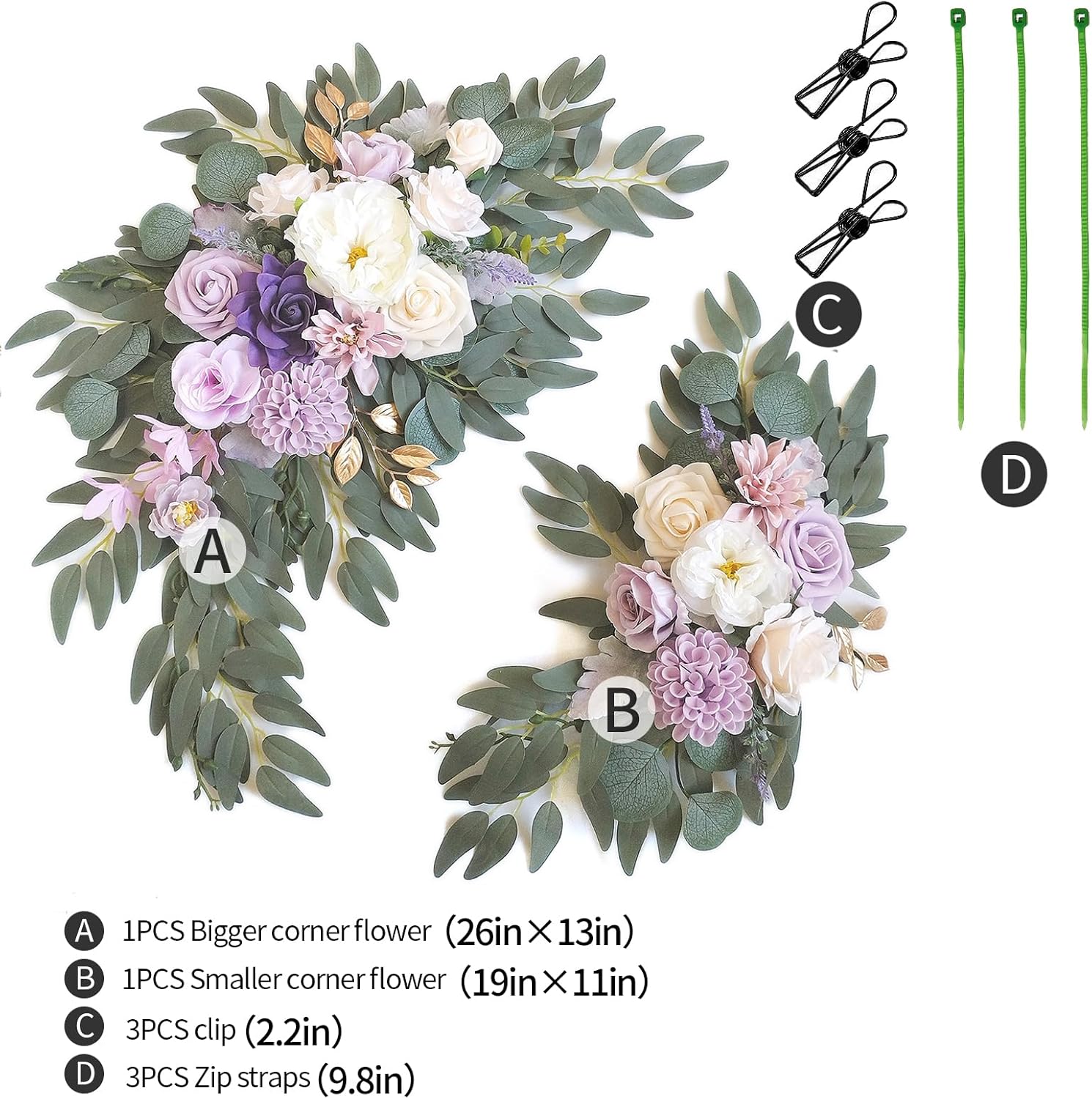 Faux Flower Swag Set of 2 for Wedding Welcome Signs Floral Swag Wedding Reception Ceremony Signs Decor (Purple)