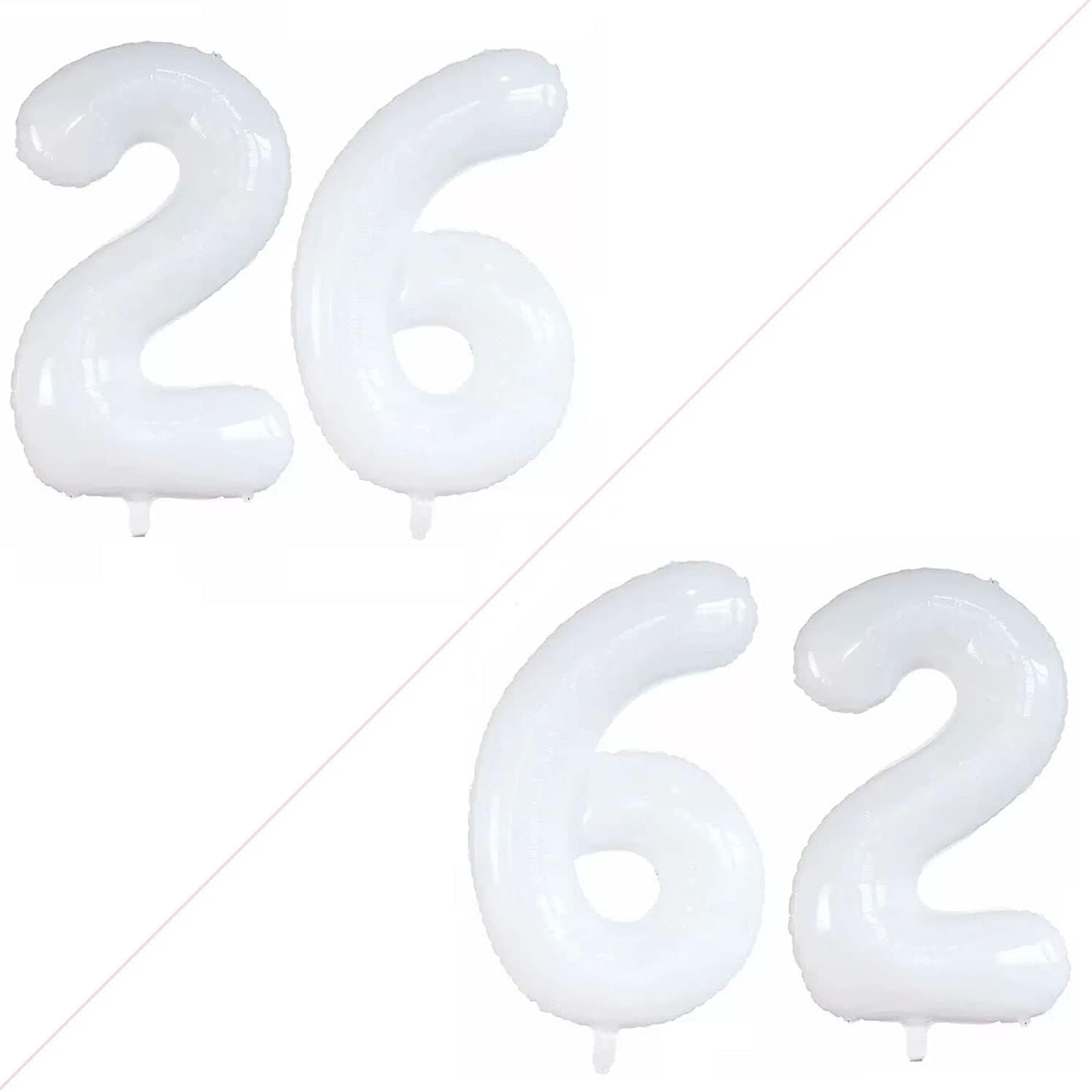 GOER Number 26 Balloons for 26th Birthday Party Decorations,42 Inch Jumbo Foil Helium 62 Balloons for 62nd Birthday Party Decoration (White)