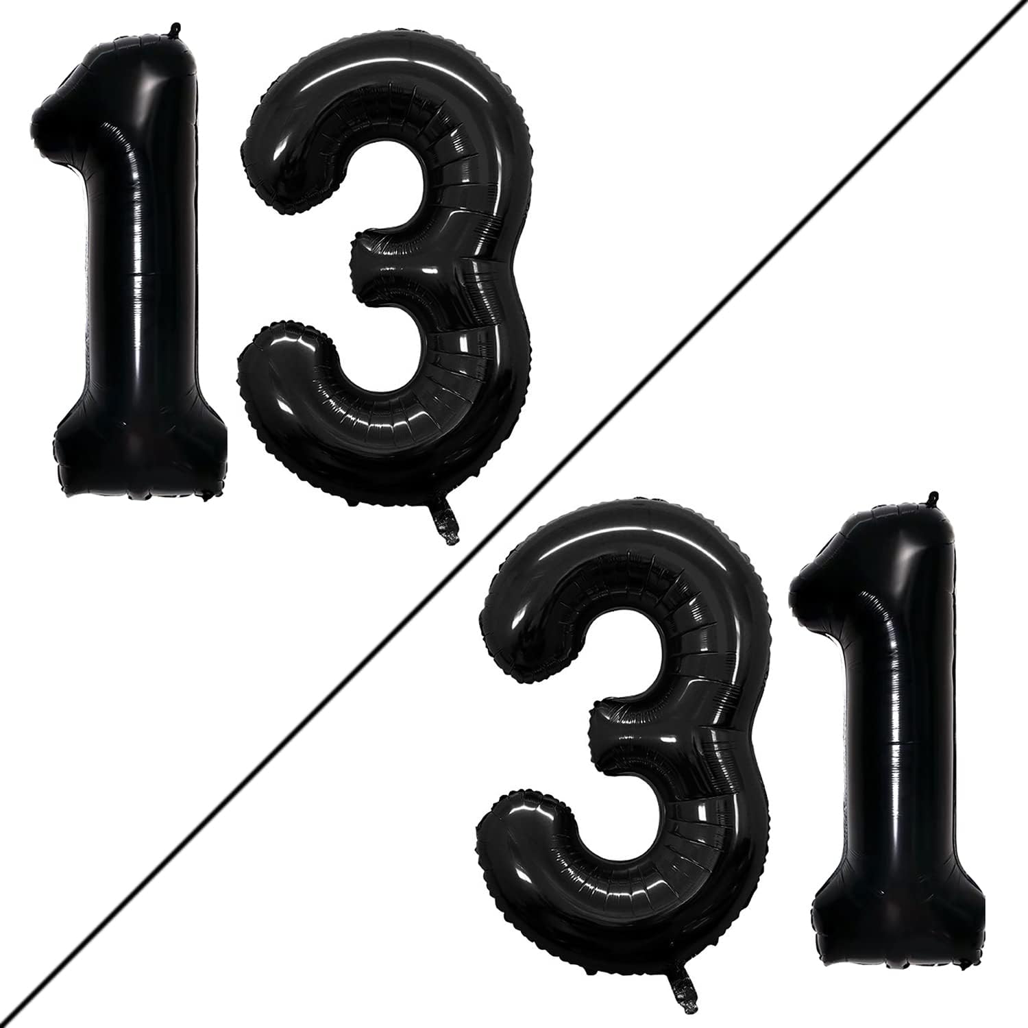 GOER Number 13 Balloons for 13th Birthday Sweet 13 Party Decorations,42 Inch Jumbo Foil Helium 31 Balloons for 31st Birthday Party Decoration (Black)