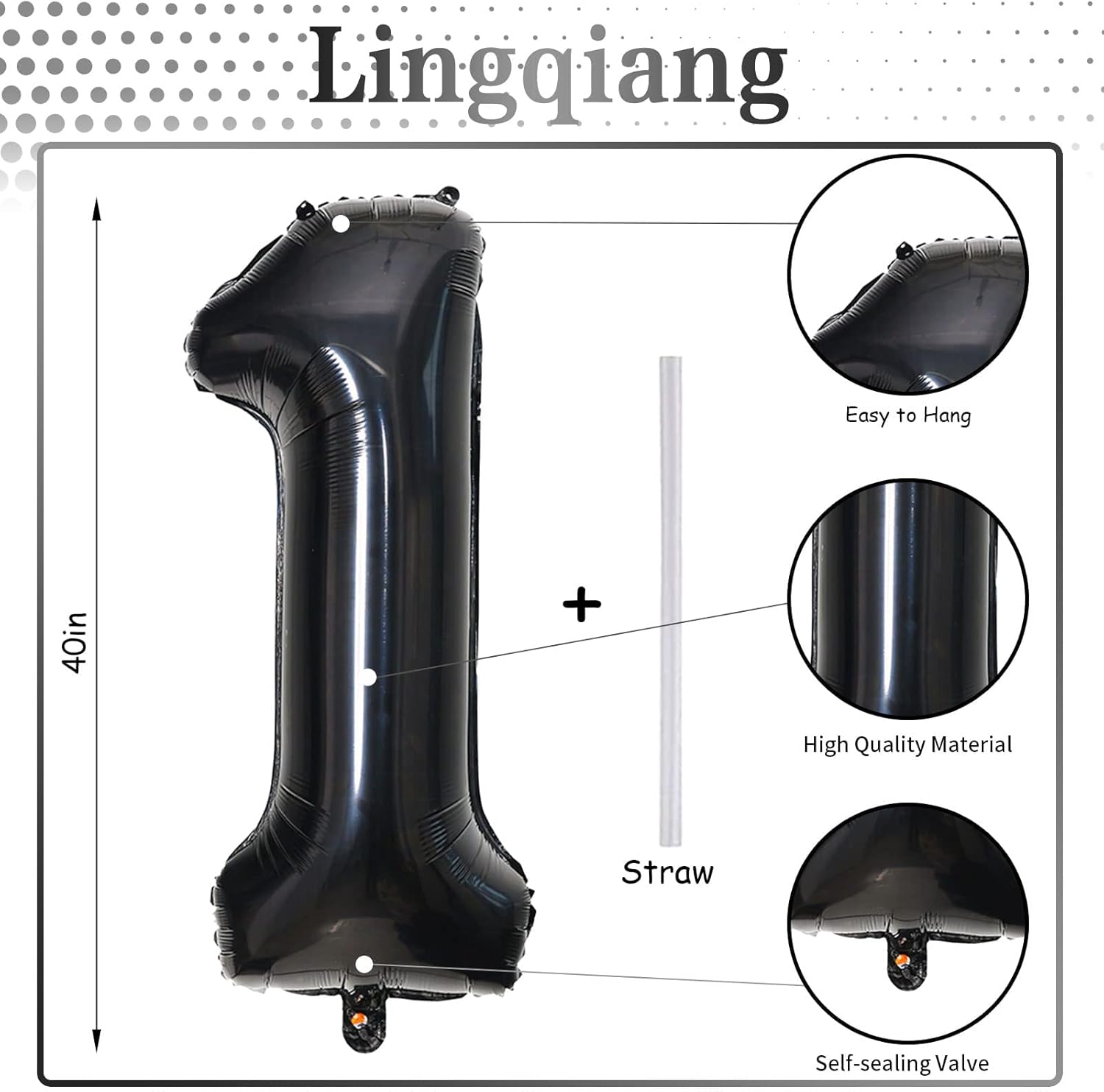 • ๐ŸŽ‰ Black Number 1 Balloon ๐ŸŽ‰ - You will get 1pc 40 inch mylar foil number 1 balloon and 1pc straw. Perfect for 1st 10th 12th 13th 15th 16th 17th 18th 21st birthday or anniversary party decorations supplies.