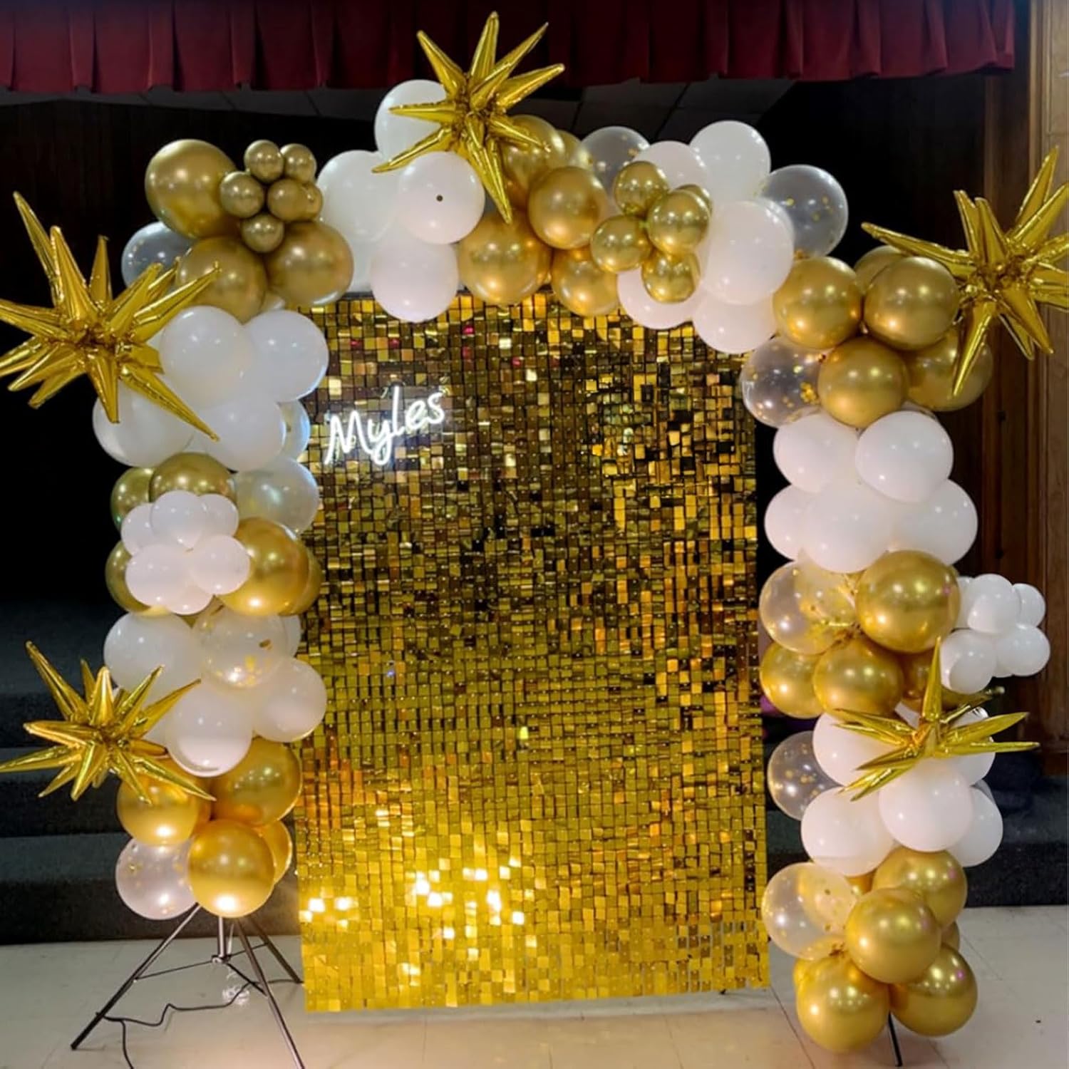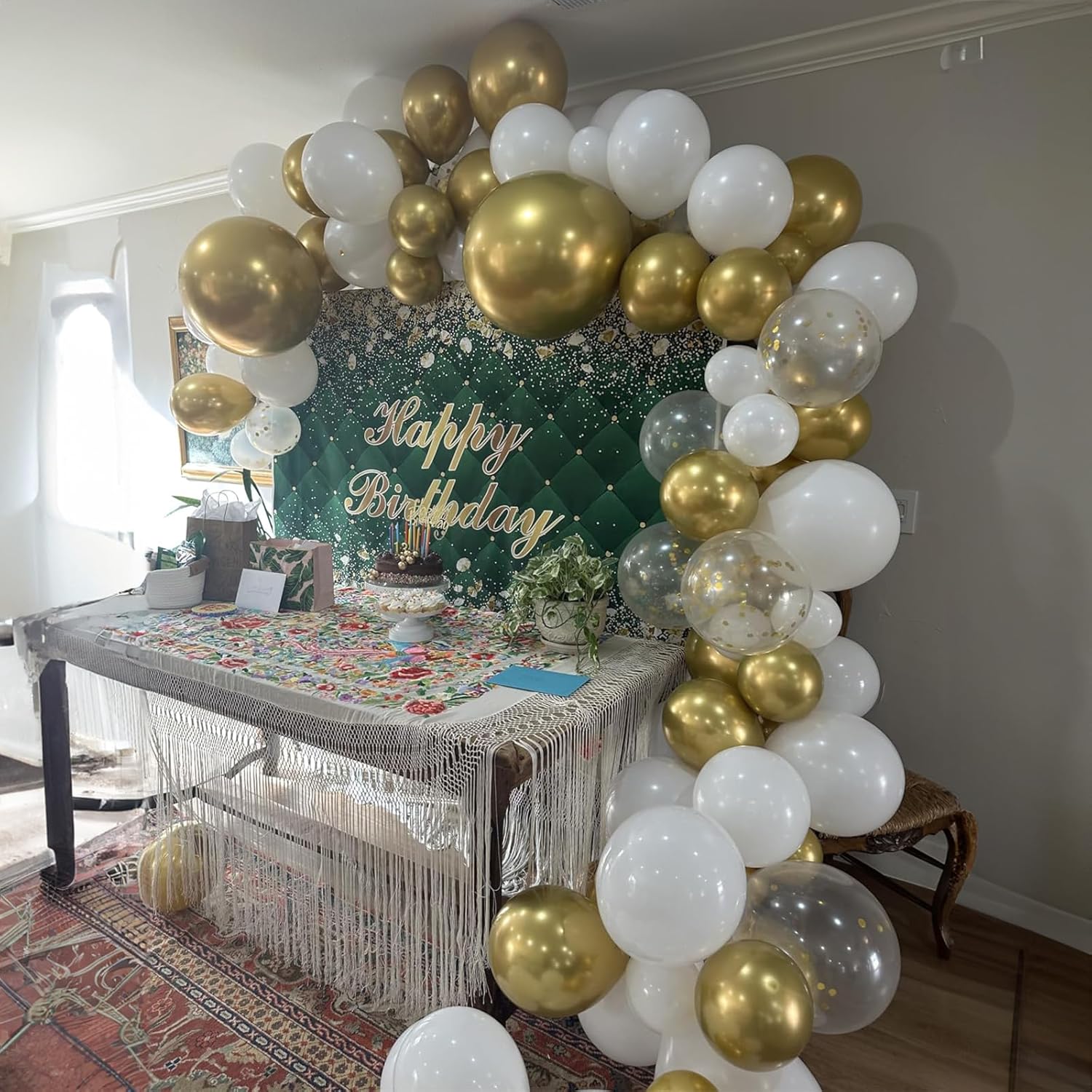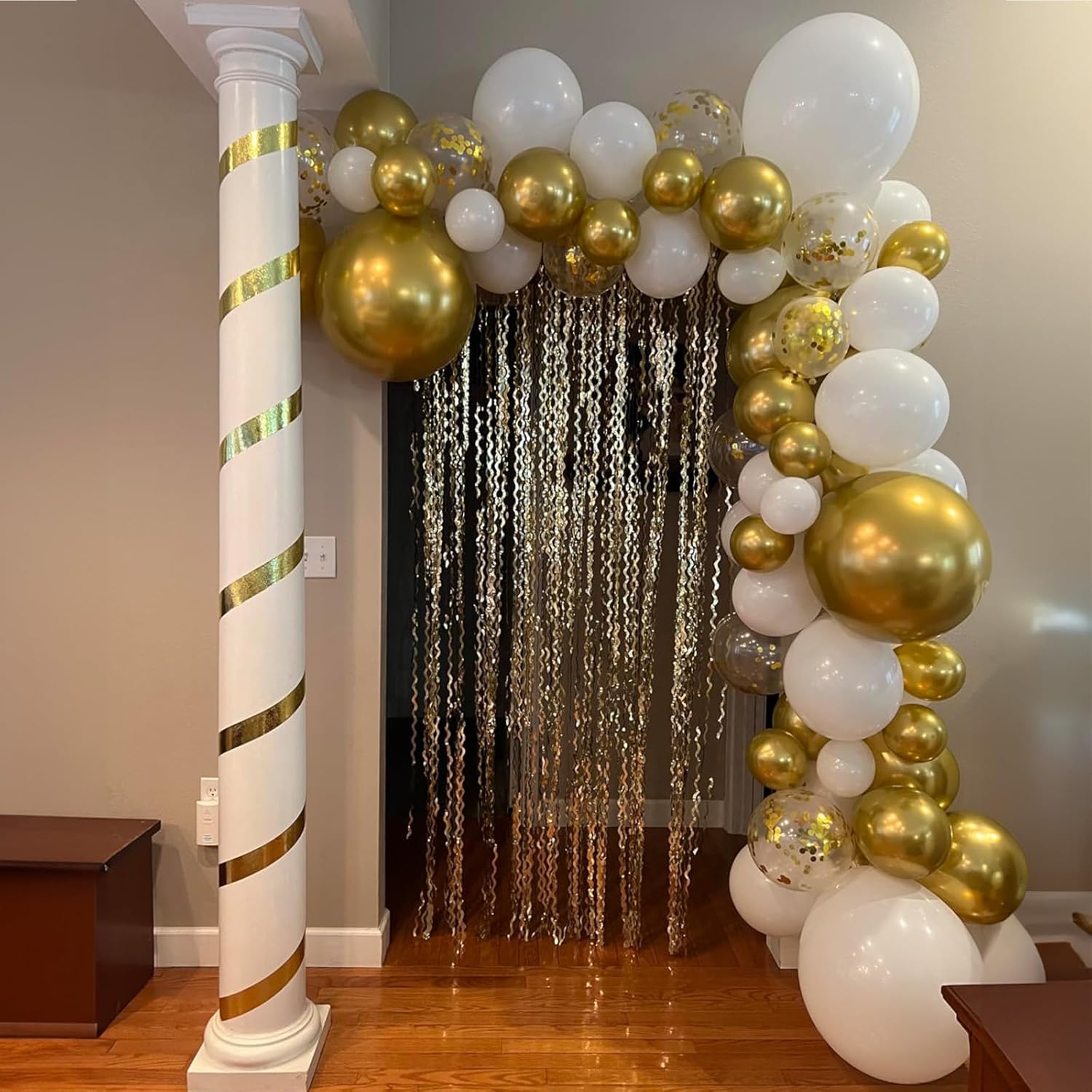 • Includes 60 white latex balloons and gold metallic balloons with 2 curling ribbons