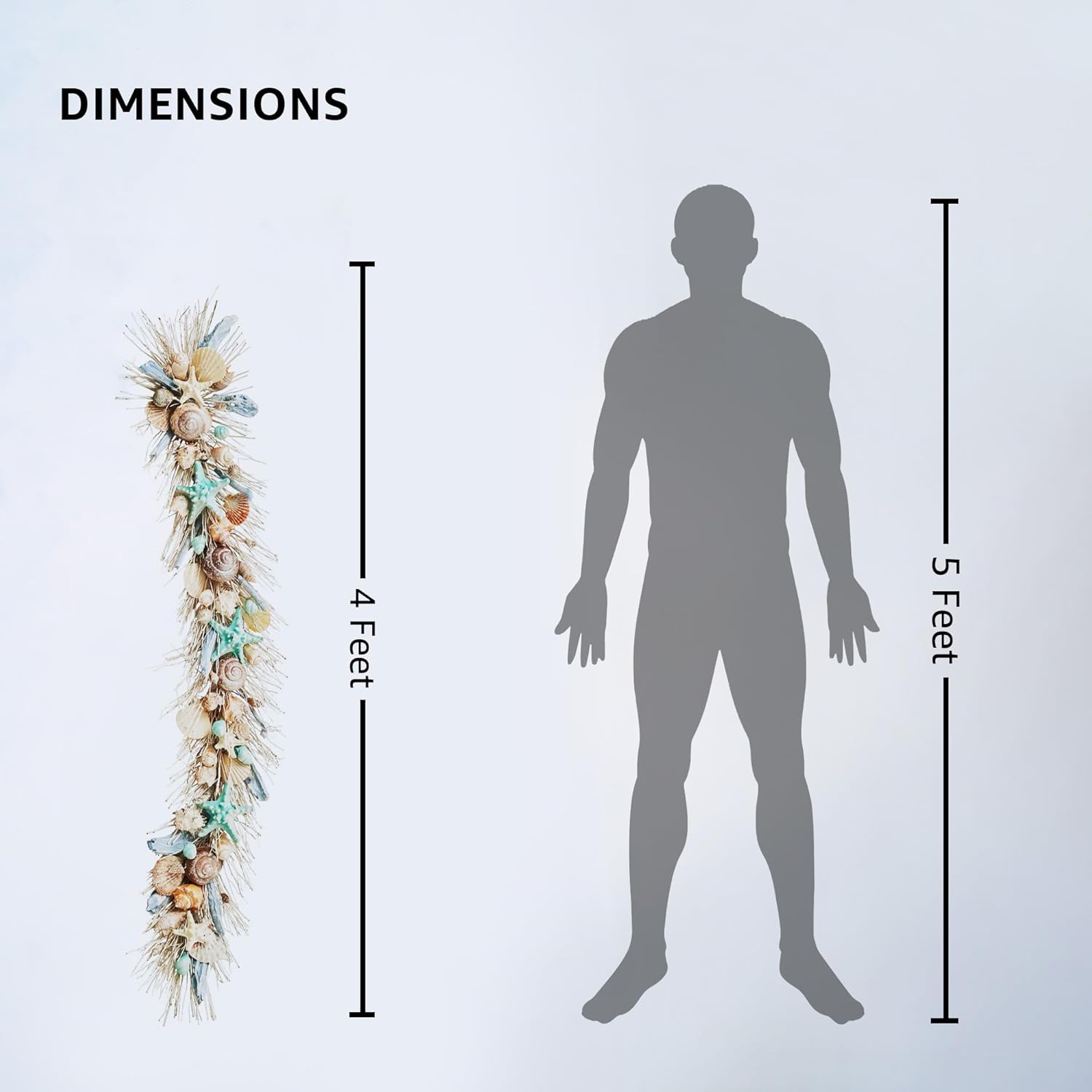 • [ Premium Beachside Elegance: ] Elevate your summer decor with this Handcrafted 4-ft Shell Coastal Summer Garland. Its intricate design and beach-inspired elements exude a sense of luxury, creating a captivating ambiance in any space.