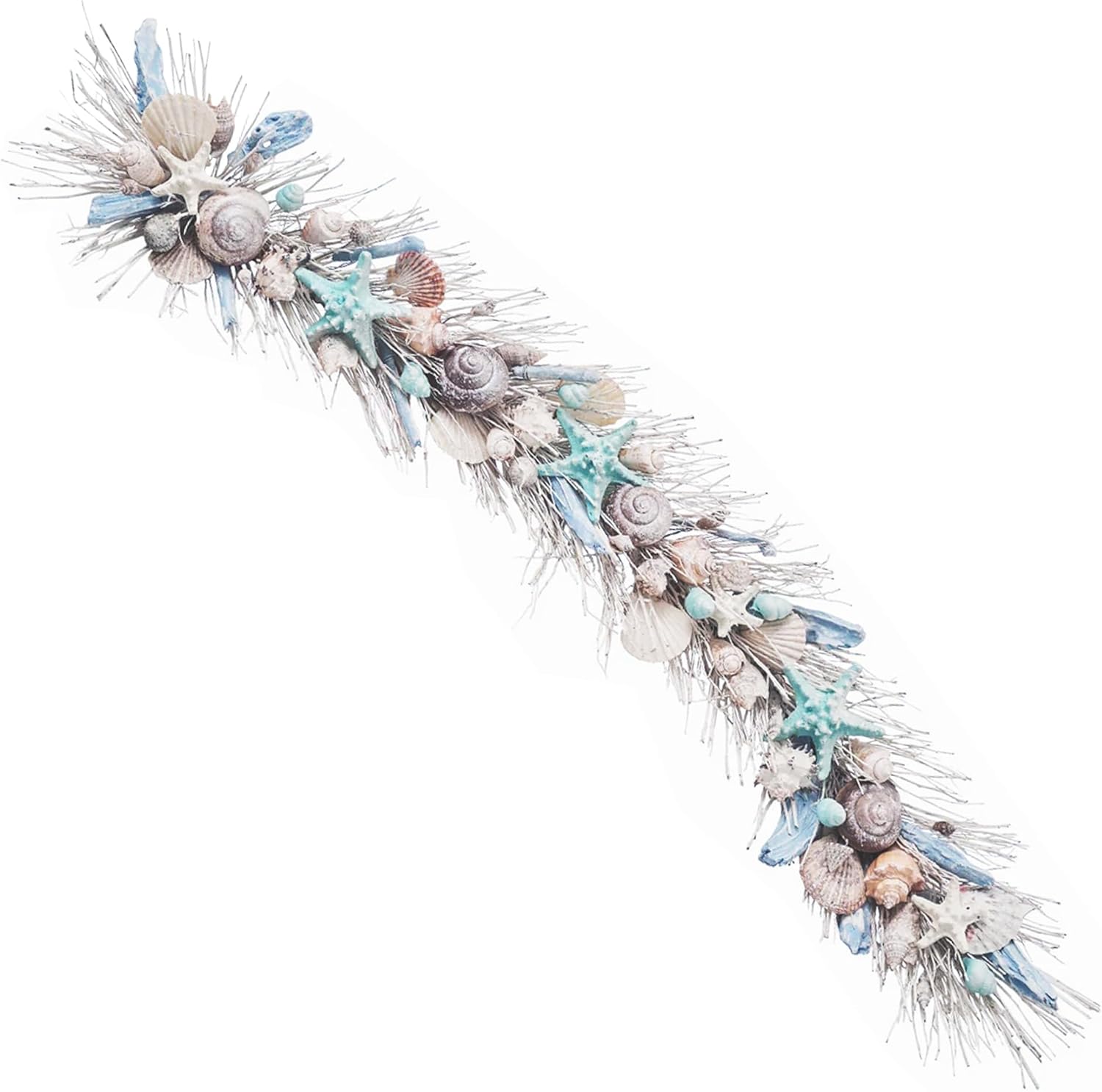 • [ Nature's Coastal Treasures: ] Immerse yourself in the beauty of the ocean with our thoughtfully curated composition. This garland features a harmonious blend of shells, resin starfish, driftwood, and twigs, bringing the beauty of the shore right to your home.