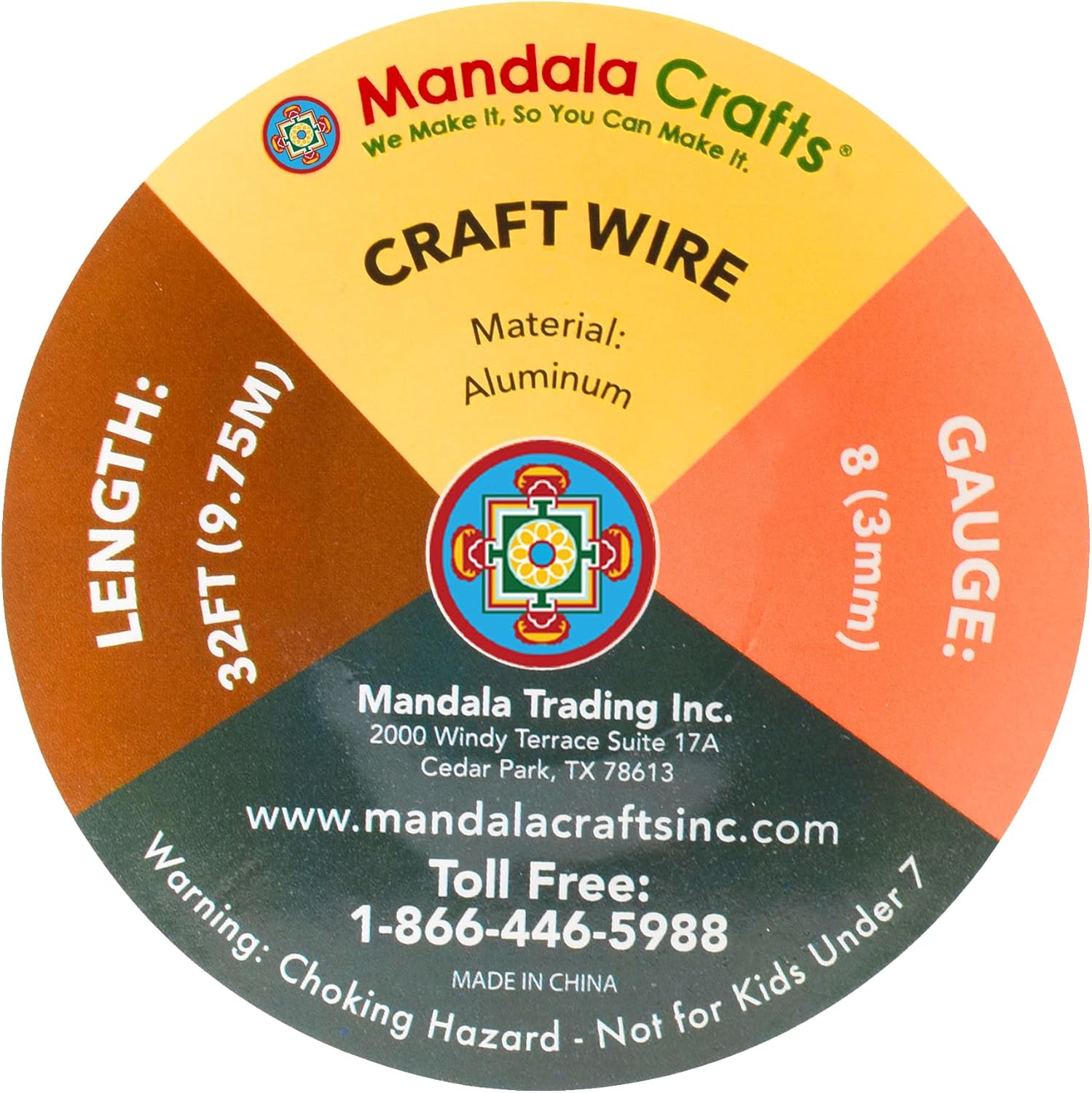 Mandala Crafts 8 Gauge Anodized Aluminum Craft Wire for Jewelry Making - 32 FT Colored Flexible Gold Wire - Bendable for Bonsai Armature Crafting Sculpting