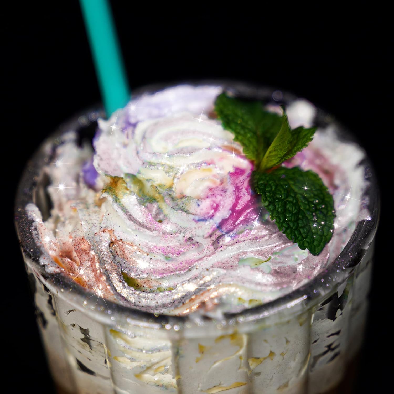 • ✔️【Use with Brews】Food-grade glitters are so fun and simple to use with brews. Add one pinch or two directly to your favorite beverage, mix it with cocktail syrups, juices, liqueurs, liquors, or spirits. Use a clear glass instead of opaque containers so that the liquid looks so cool, especially when you move it around in the glass with a stir. A tiny amount of dust can create a great visual spectacle, and clear liquids offer a great blank canvas for glitter to show off the best ability.