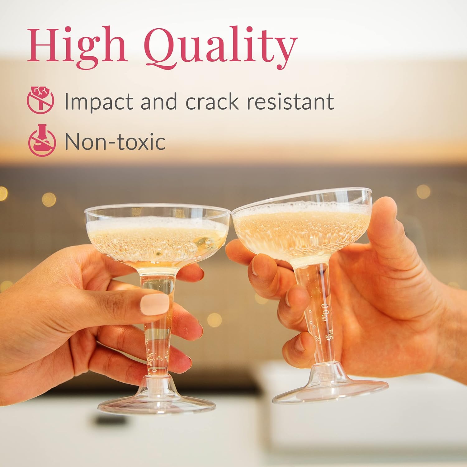 • COST-EFFICIENT – Crafted from high-quality plastic at an affordable price, these stylish glasses add elegance to any event—ideal for parties, champagne towers, weddings, or upscale gatherings.