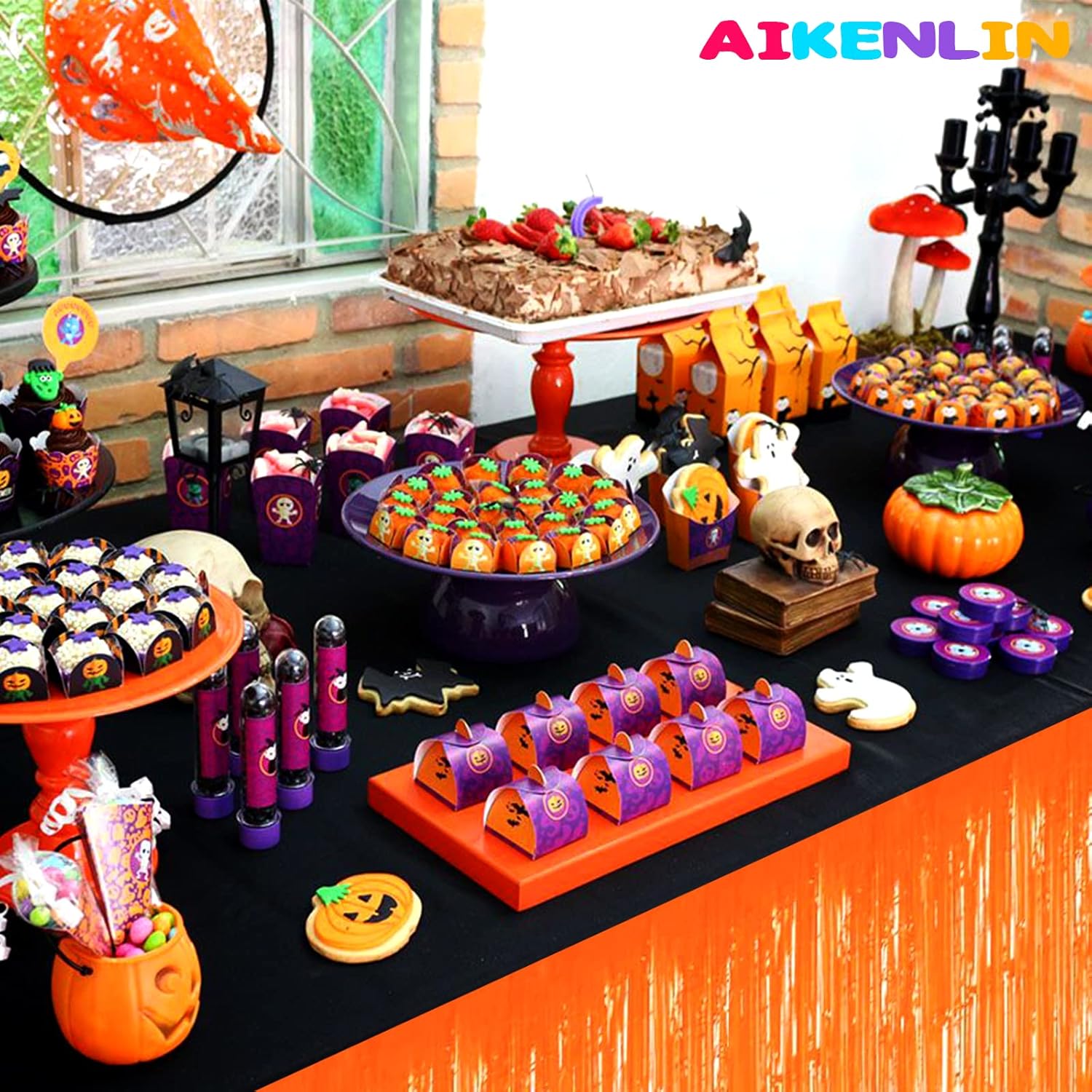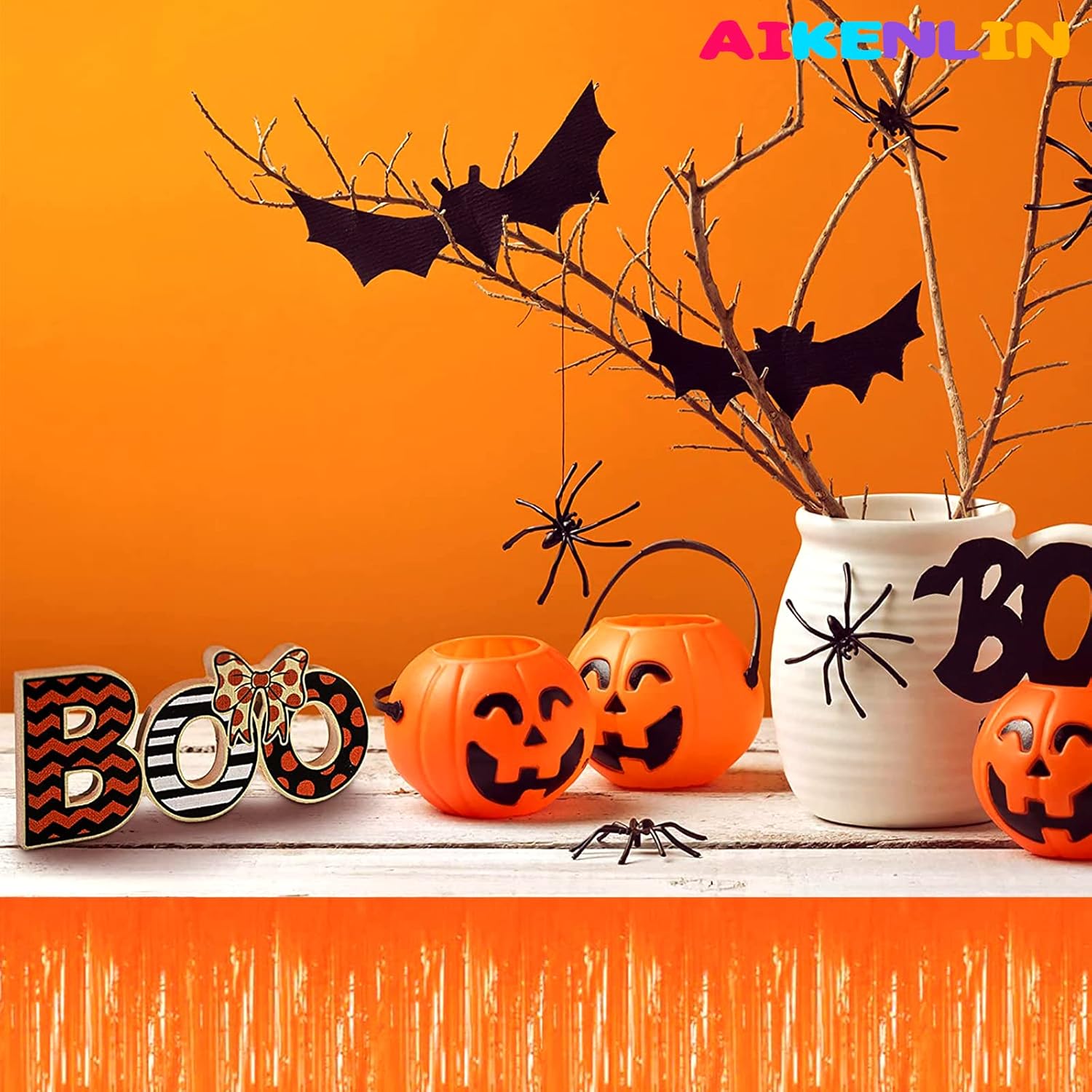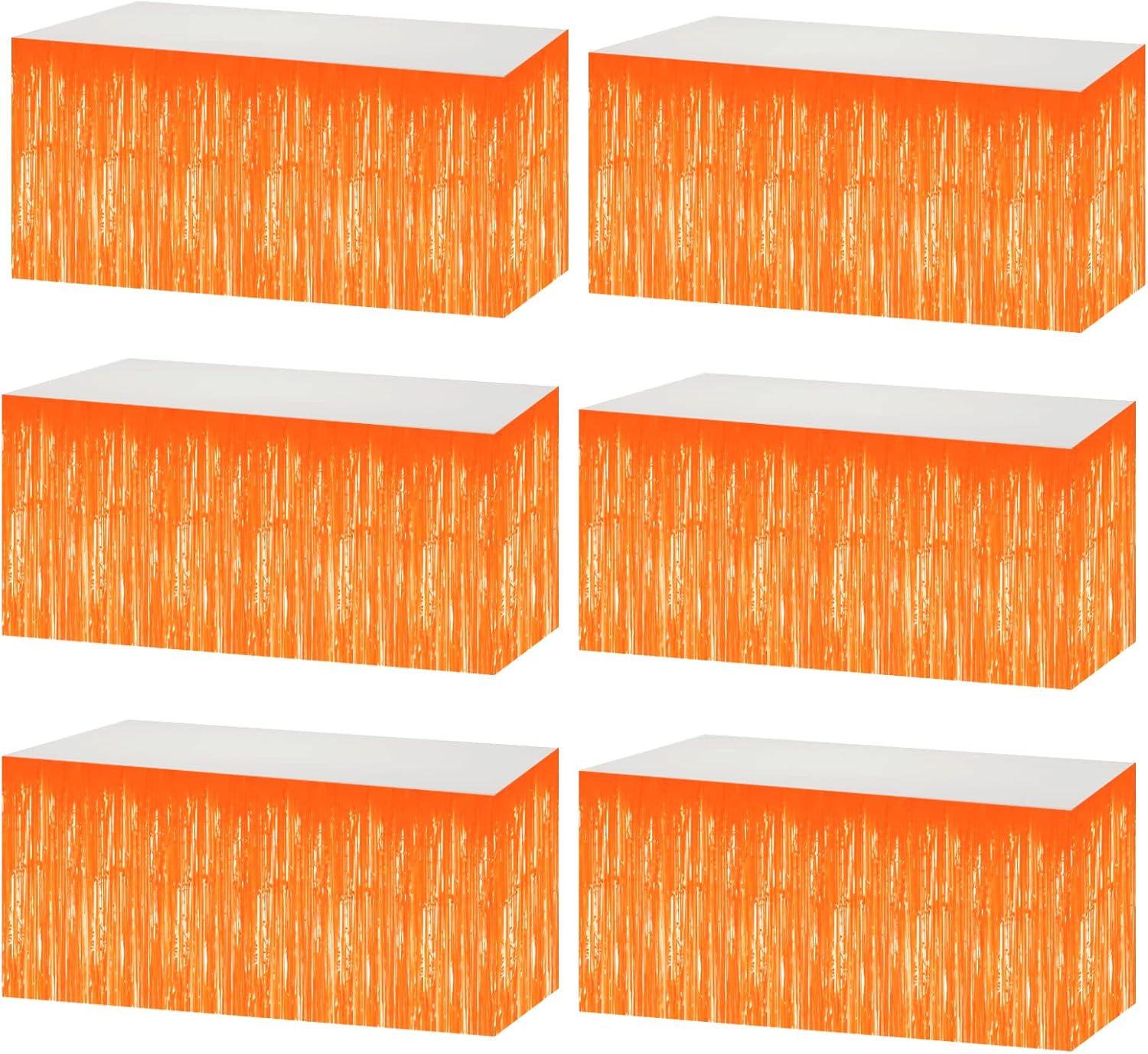 6 Pack 29x108 Inch Metallic Foil Fringe Tinsel Table Skirts Banner for Rectangle Tables Streamer Garland Curtains Backdrop for Wedding, Birthday, Parade Floats, Christmas Party Decoration(Orange)