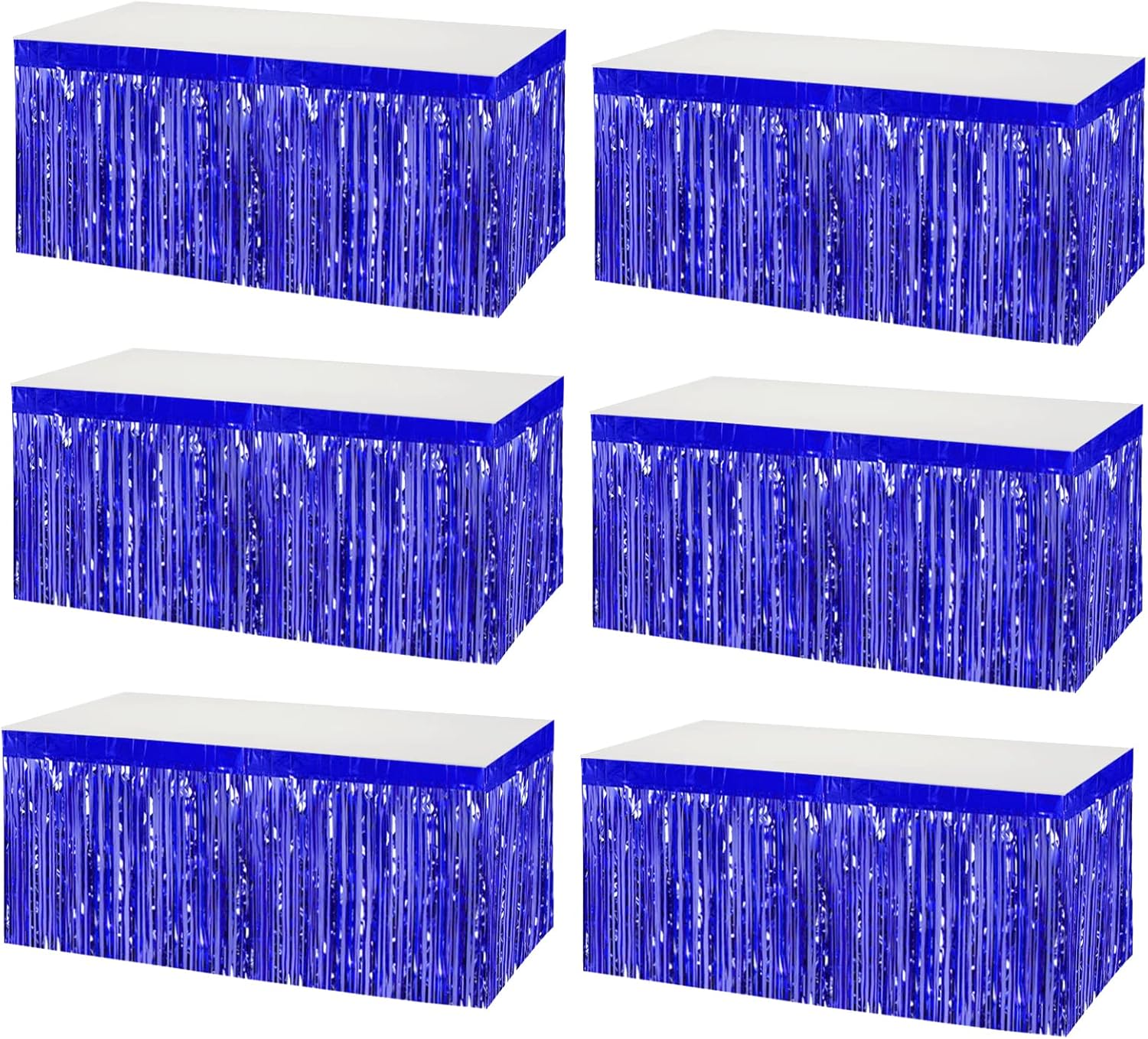 6 Pack 29x108 Inch Metallic Foil Fringe Tinsel Table Skirts Banner for Rectangle Tables Streamer Garland Curtains Backdrop for Wedding, Birthday, Parade Floats, Christmas Party Decoration(Blue)