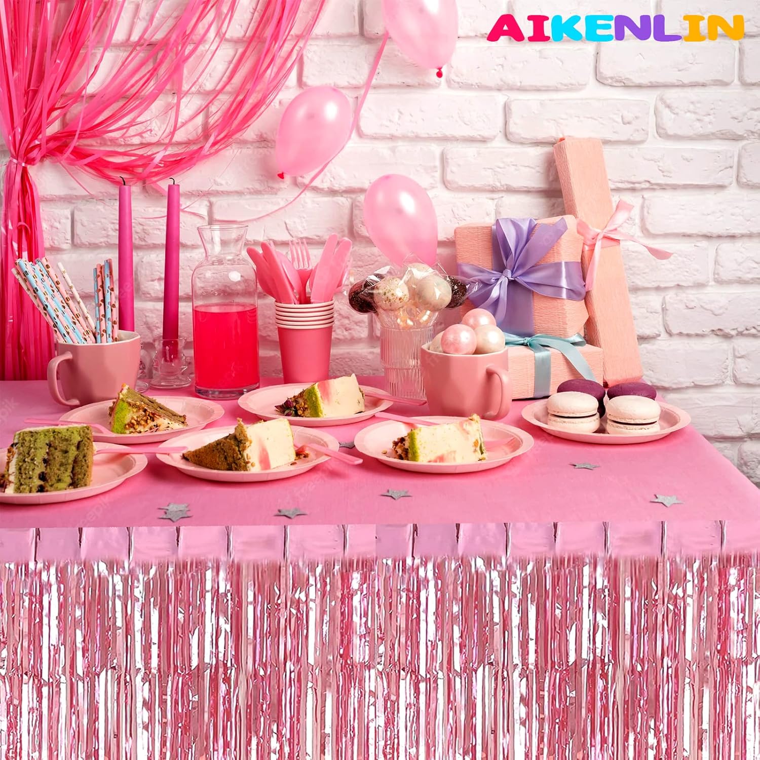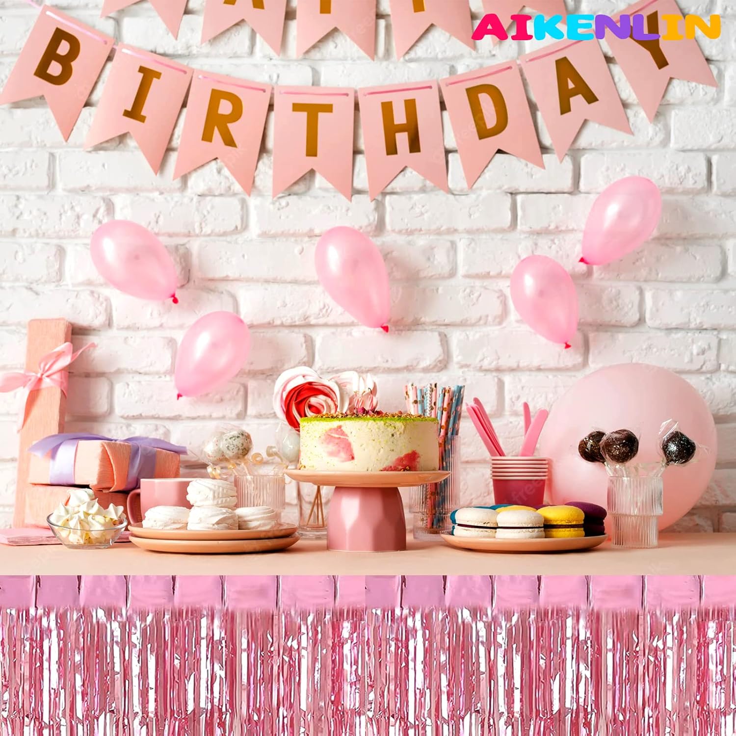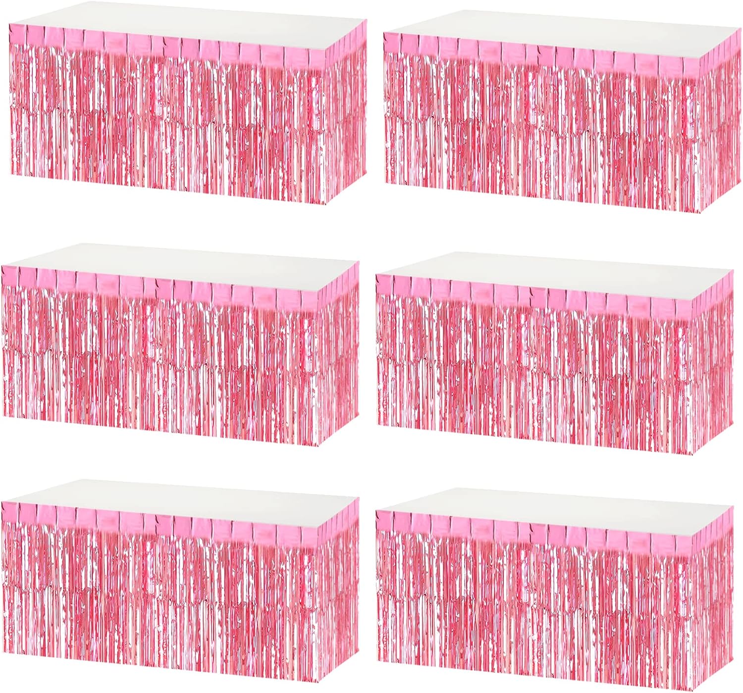 6 Pack 29x108 Inch Metallic Foil Fringe Tinsel Table Skirts Banner for Rectangle Tables Streamer Garland Curtains Backdrop for Wedding, Birthday, Parade Floats, Valentine's Day Party Decoration(Pink)